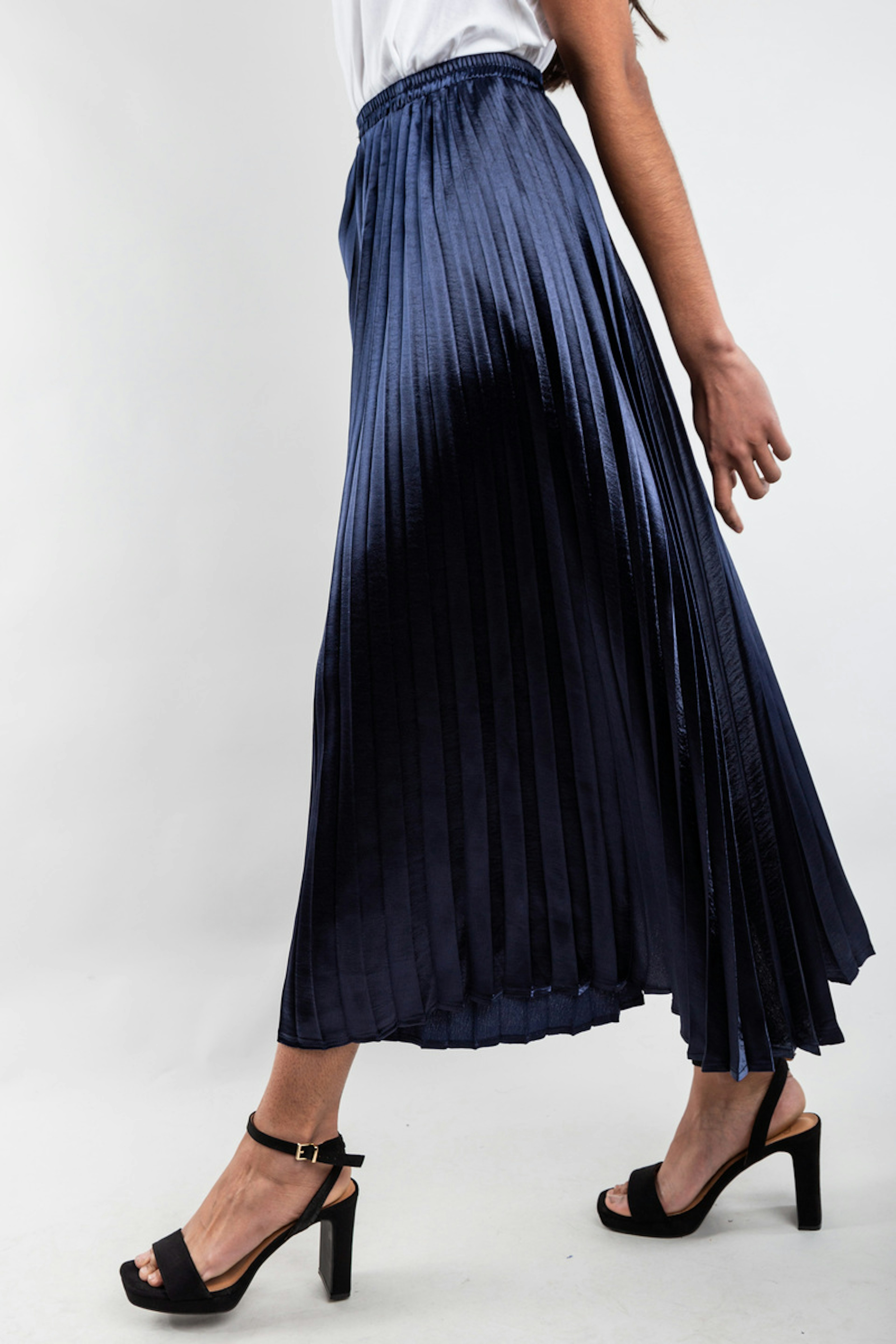 โข Jafar est une jupe longue offrant de l'ampleur ร votre silhouette et beaucoup d'รฉlรฉgance โข On adore son aspect satinรฉ mรฉtallisรฉ qui attirent la lumiรจre pour briller jusqu'au bout de la nuit โข Tissu satinรฉ, plissรฉ et fluide โข Coupe รฉvasรฉe โข Longueur chevilles โข Ceinture รฉlastique โข Finitions surpiquรฉes โข Longueur du produit depuis la taille pour la taille S : 90 cm