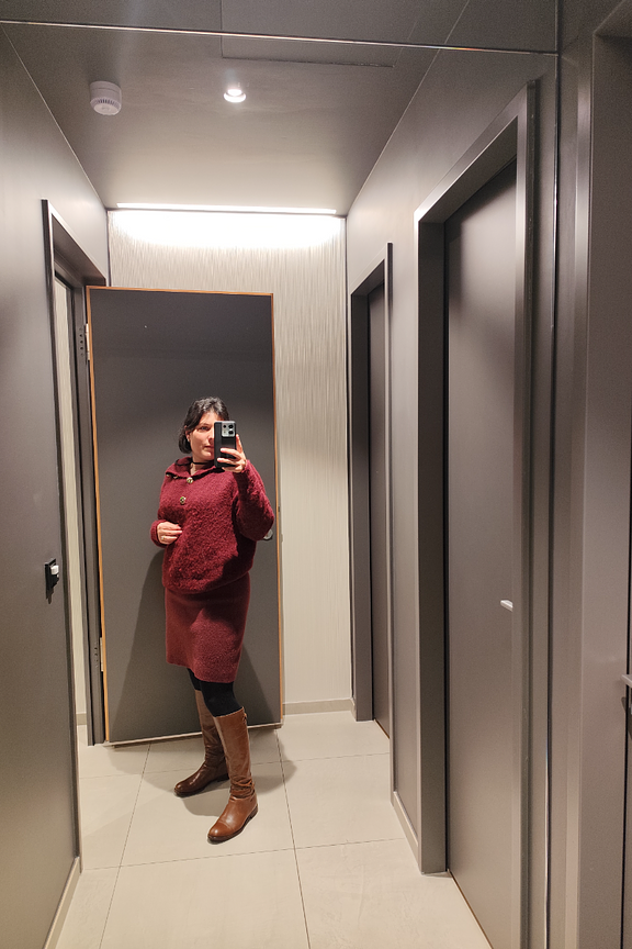 โJ'ai portรฉ la jupe avec le pull assorti. Look sympa ! La ceinture de la jupe est un peu รฉpaisse donc peut etre lรฉgรจrement dรฉsagrรฉable en fin de journรฉe.โ
