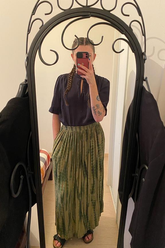 โข Jupe longue kaki ร imprimรฉs โข Conรงue ร 100% viscose โข Longueur : environ 90cm de longueur totale โข Fente ouverte d'environ 30cm โข Tissu fluide et lรฉger