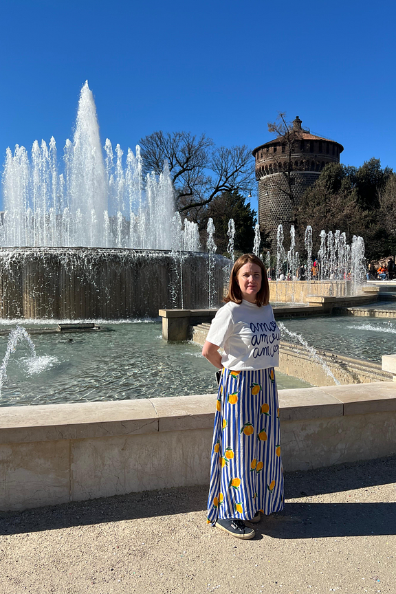 Associez ce look à des sandales en cuir et un chapeau de paille pour un style estival et décontracté. • Jupe longue en coton • Taille élastiquée • Imprimé fruité • Coupe ample et aérienne • Rayures verticales accrocheuses