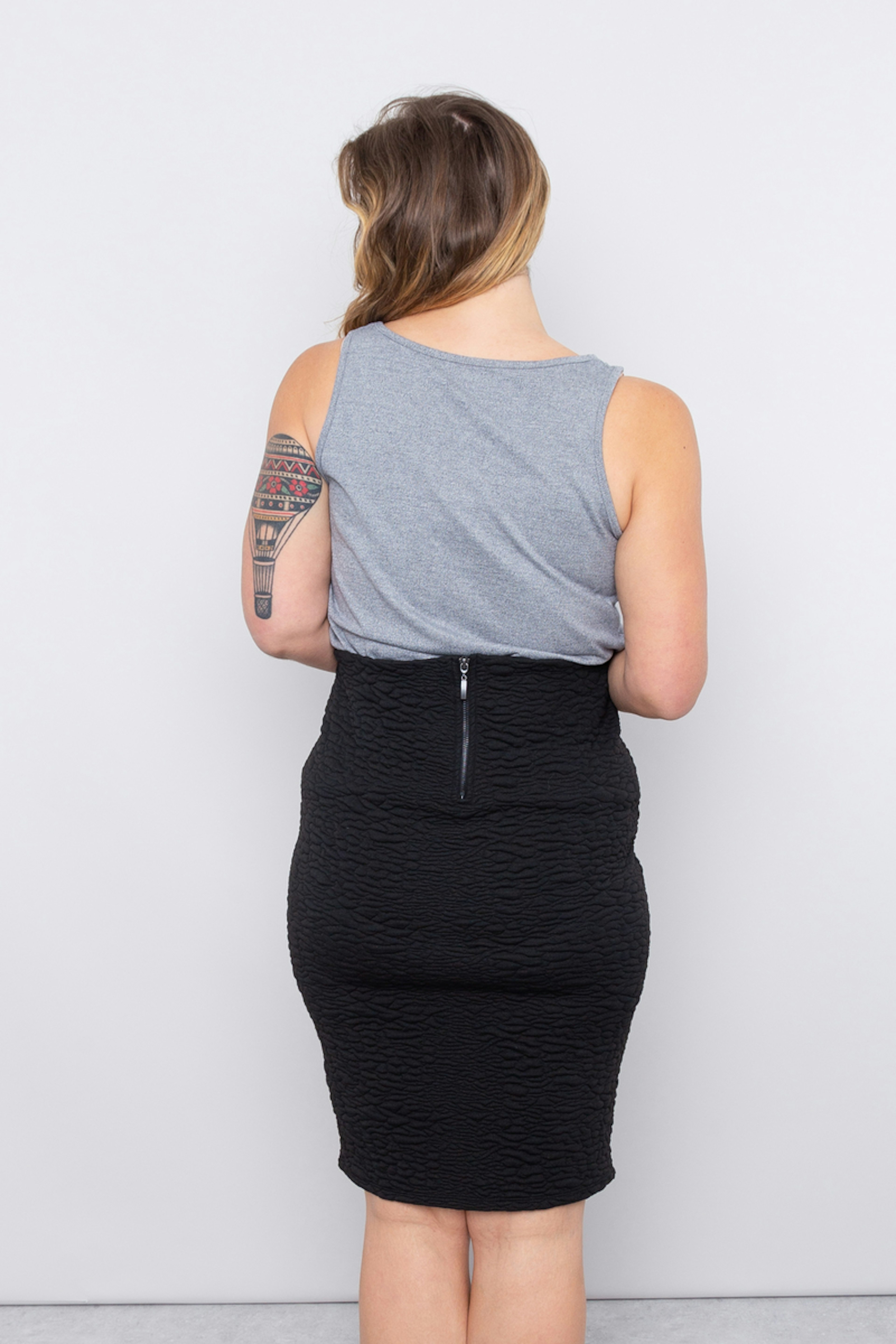 Jupe Noppies taille haute matiรจre sweat trรจs confortable Tissu structurรฉ faรงon reptile Coupe prรจs du corps Longueur au dessus du genou On adore l'associer avec un tee-shirt manches longues ou un chemisier glissรฉ dedans.
