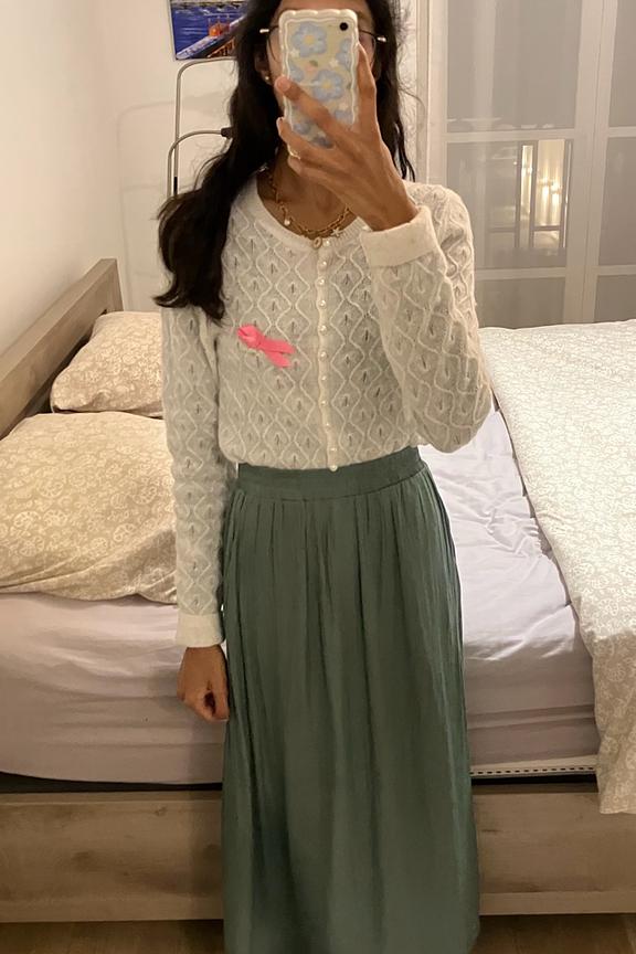 Pour un look dรฉcontractรฉ et รฉlรฉgant, associez cette jupe asymรฉtrique avec un haut fluide et des sandales en cuir pour une touche bohรจme. Ajoutez une veste en jean pour les soirรฉes plus fraรฎches. Parfaite en toute saison. โ€ข Jupe longue asymรฉtrique โ€ข Taille รฉlastique โ€ข Tissu lรฉger et fluide โ€ข Teinte vert kaki
