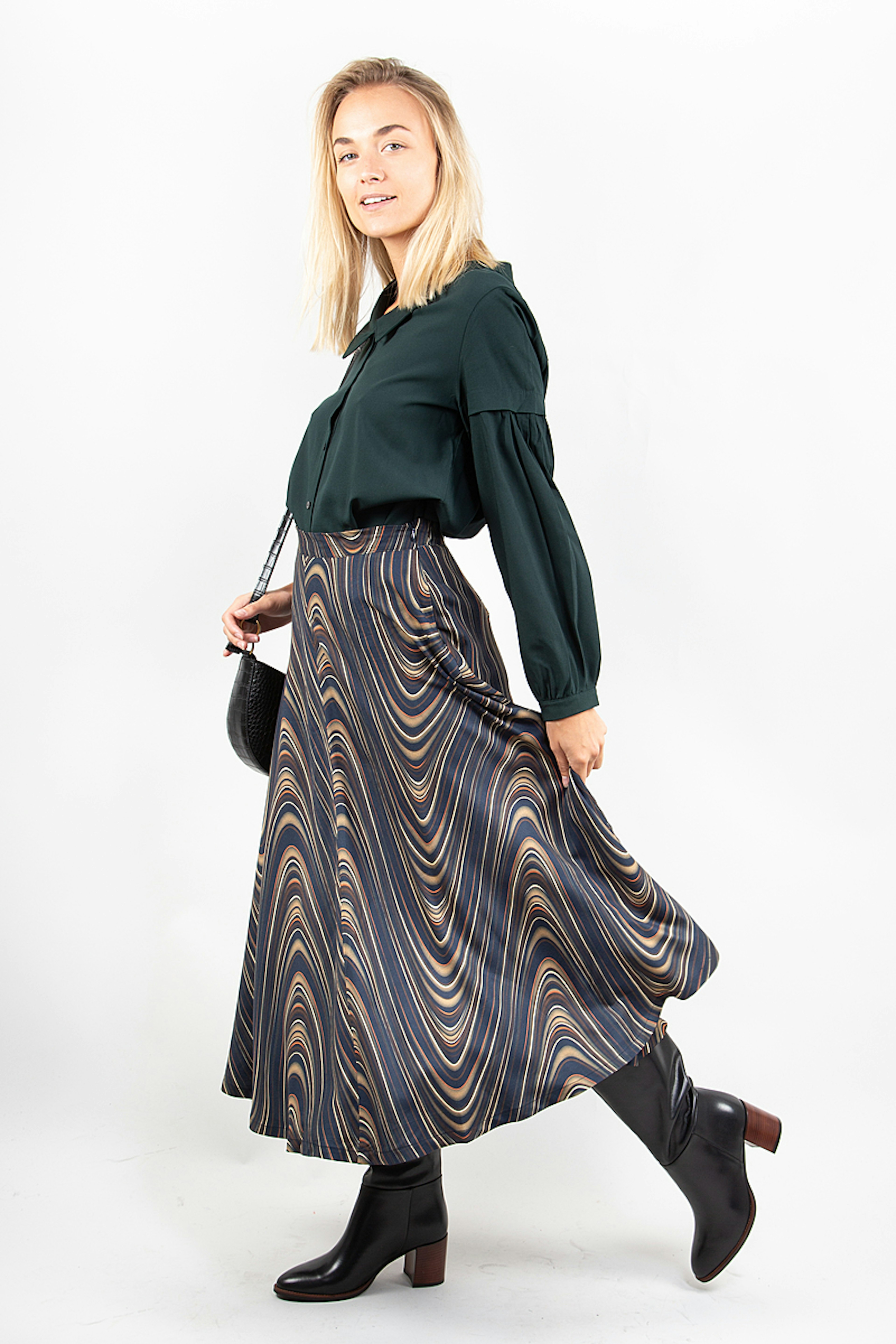 โข Jupe longueur midi โข Imprimรฉ psychรฉ original โข Zip sur le cรดtรฉ โข Arriรจre de la jupe รฉlastiquรฉ โข Tissu en viscose certifiรฉe รฉcovero