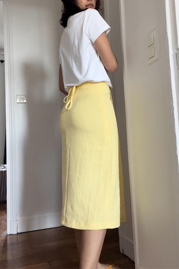 Soleil et style, cette jupe jaune est un incontournable pour un été radieux. À marier avec un top uni et des sandales pour un chic décontracté. • Jupe large en viscose • Taille haute avec lien • Longueur midi • Coupe évasée • Couleur unie Jaune