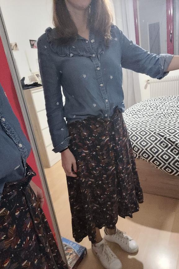 โTrรจs belle jupe. Parfaite avec la chemise en jean.โ