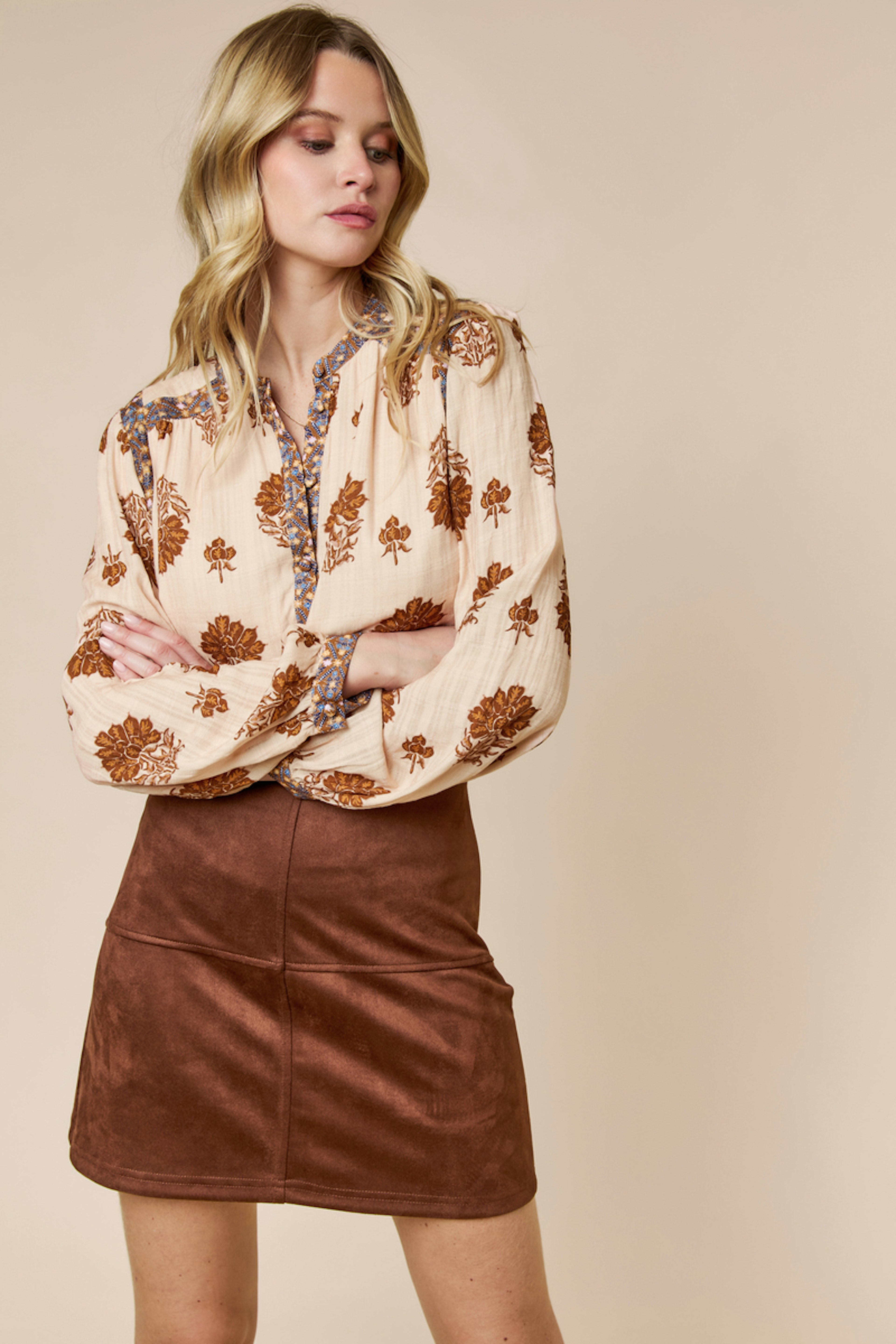 Associez cette jupe marron à un pull douillet et des bottes hautes pour un look d'hiver chic et cosy. • Jupe courte • Coupe ajustée • Taille haute pour une silhouette féminine • Tissu doux au toucher • Fermeture invisible au dos