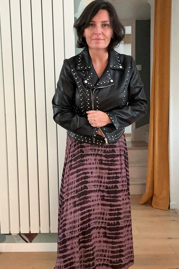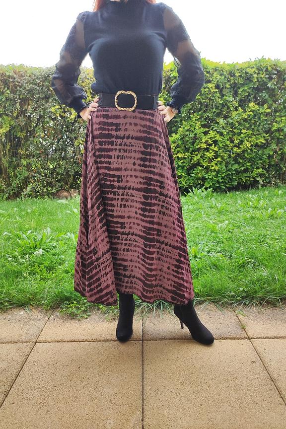 Pour un look chic et audacieux, associez cette jupe avec un pull à col roulé noir et des bottes en cuir. Ajoutez une veste en cuir pour une allure rock et sophistiquée. Idéal pour les journées fraîches d'hiver. • Jupe longue fluide • Taille haute • Motif imprimé • Coupe évasée • Matière douce et légère