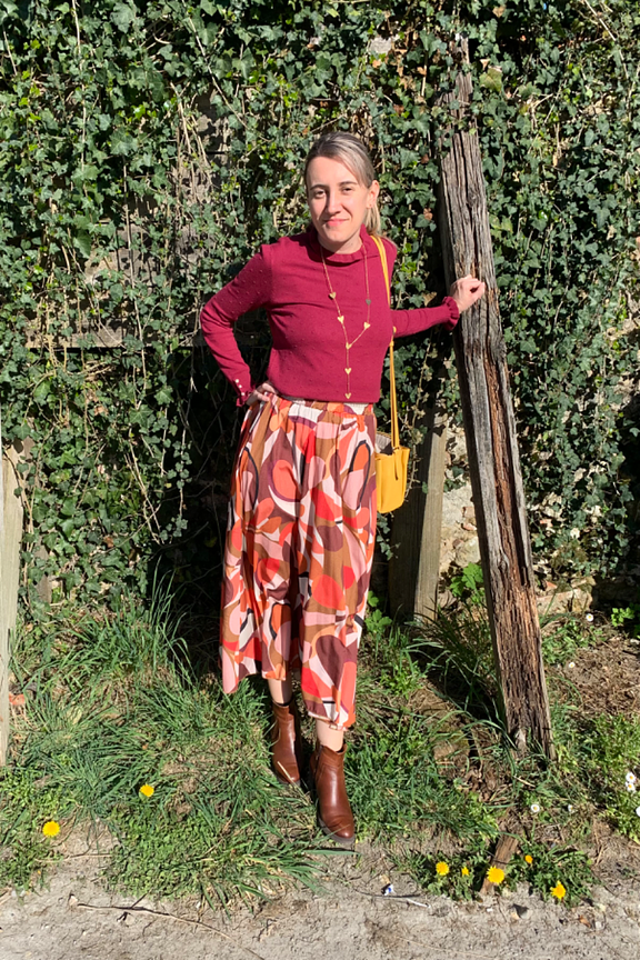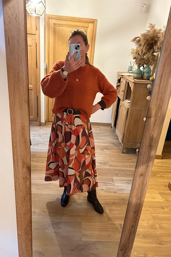 โJ'adore cette jupe. Trรจs agrรฉable ร porter, tombe bien, jolies couleurs automnalesโ