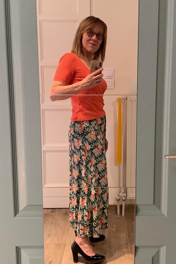 โTrรจs jolie mais taille petit. Fais un petit 36 et la jupe en 36 serrait un peu la tailleโ