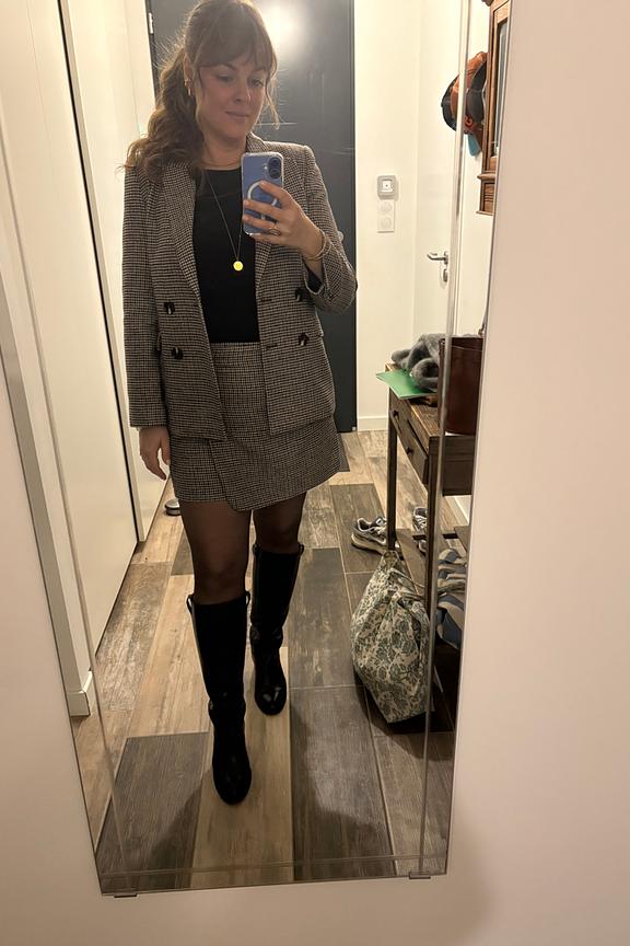 Associez cette jupe short avec un pull en cachemire pour un look hivernal chic et cosy. Ajoutez des bottines en cuir pour une touche d'รฉlรฉgance moderne. โข Jupe courte โข Drapรฉe pour une allure sophistiquรฉe โข Boutons dรฉcoratifs pour une touche unique โข Imprimรฉ tendance pour une allure intemporelle โข Mรฉlange de matiรจres pour plus de confort