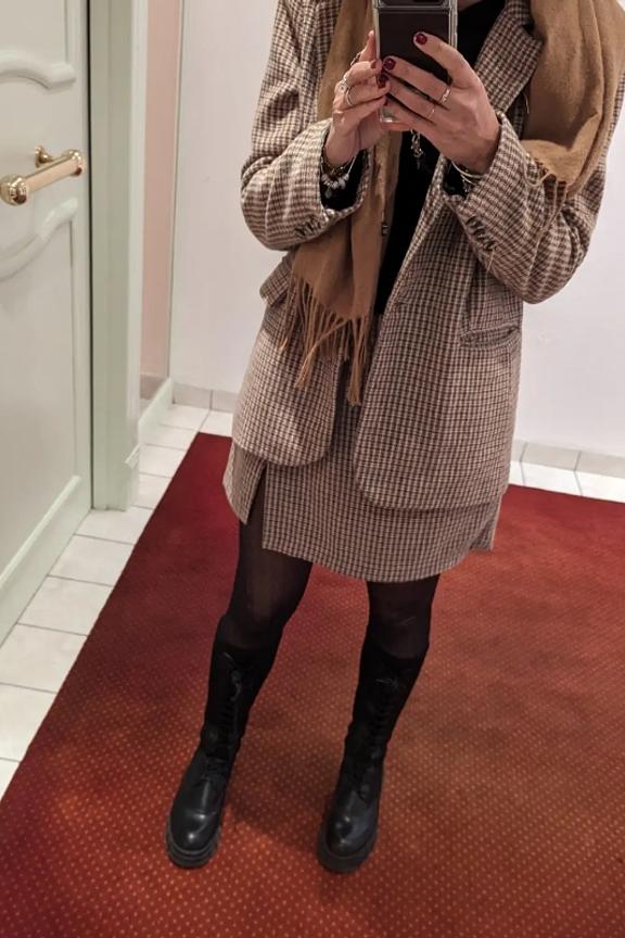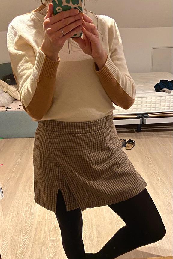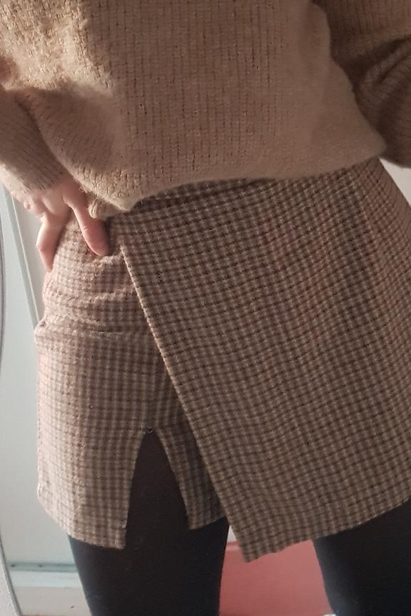 Cette petite jupe c'est tout ce qu'on adore en ce moment : l'imprimรฉ pied-de-poule, le coloris chocolat, la coupe portefeuille, tout est lร pour nous faire craquer ! On la porte avec un gros pull et le blazer assorti pour un look casual ultra stylรฉ. โข Jupe-short ร carreaux en laine mรฉlangรฉe โข Motifs imprimรฉ pied-de-poule โข Peut etre portรฉ en ensemble avec le blazer Isis โข Coupe ajustรฉ โข Fente sur le devant โข Le produit taille petit prendre une taille au dessus โข Fermeture zippรฉe sur le cรดtรฉ