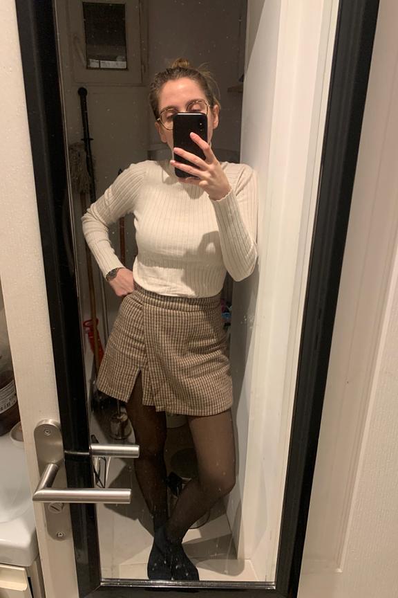 โJoli. La fente monte assez haut donc on voyait lรฉgรจrement la dรฉlimitation de mon collant. La matiรจre gratte un peuโ