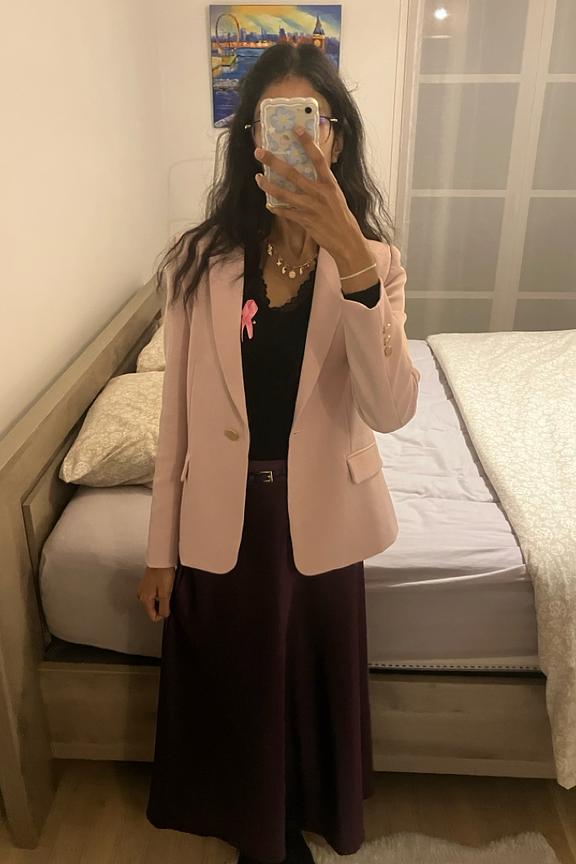 “Magnifique. La coupe est superbe. Le tissu est très beau . Couleur parfaite pour la. Mi saison. Je la garde”