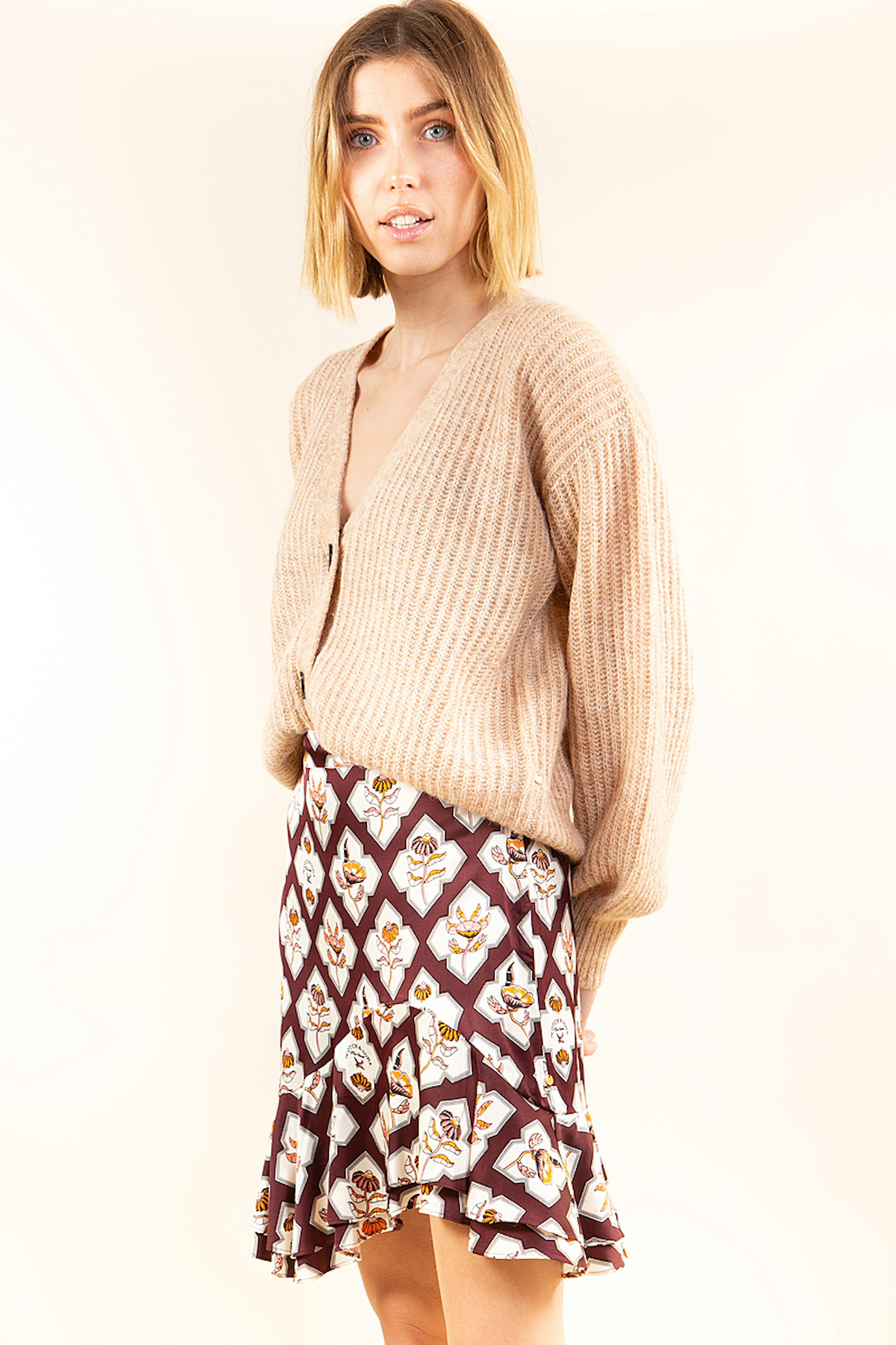 Craquez pour la jupe courte Thรฉrรจse ร l'imprimรฉ exclusif de chez Scotch & Soda. Elle se porte aussi bien avec une petite maille qu'avec un top durant l'รฉtรฉ.