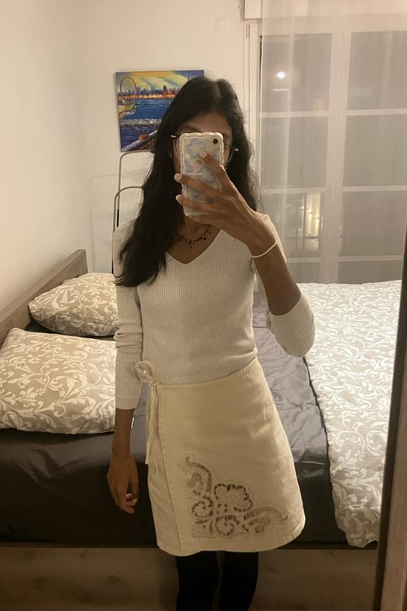 “Jolie jupe, originale, mais attention le tissu est assez épais. Plutôt pour la mi saison.”