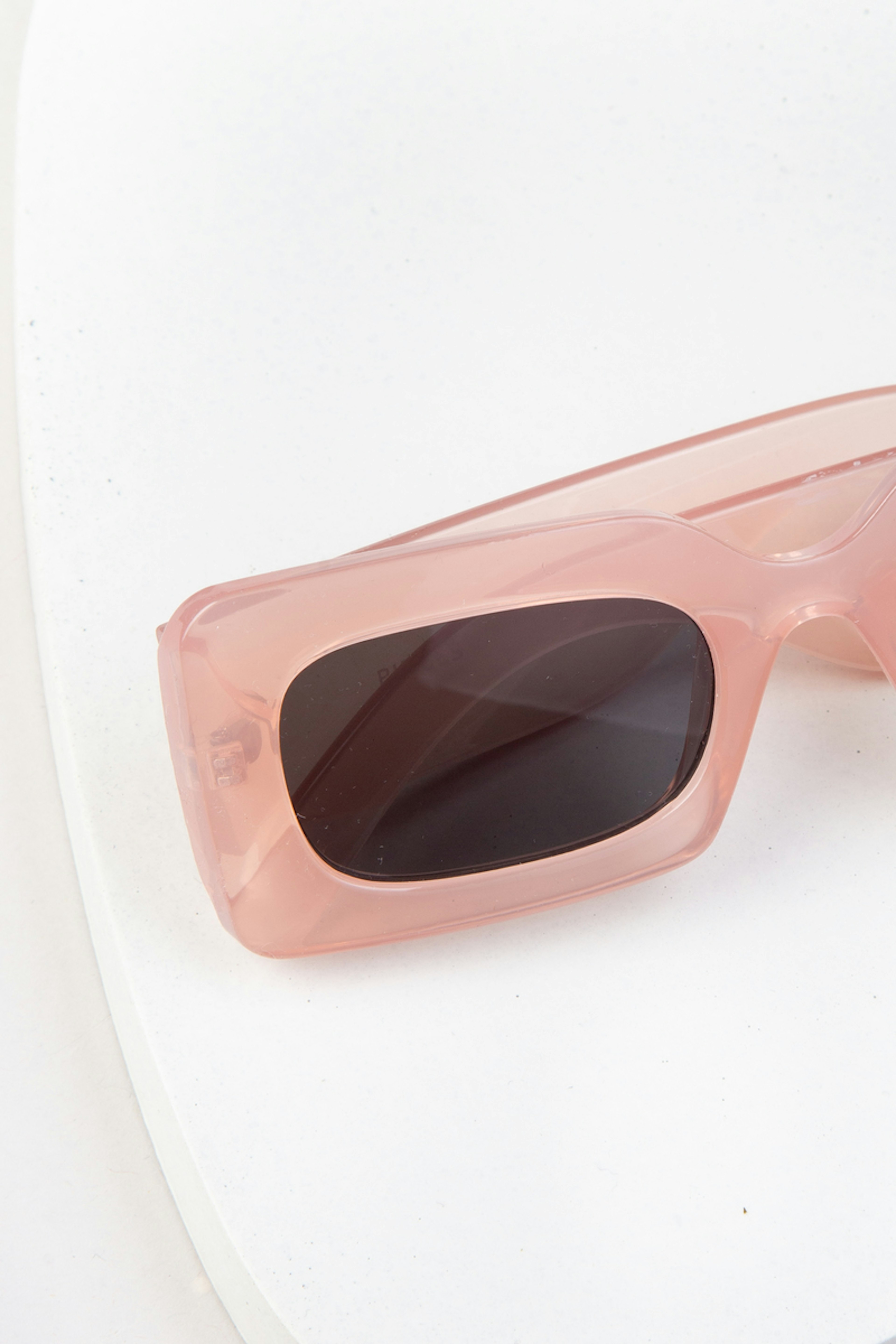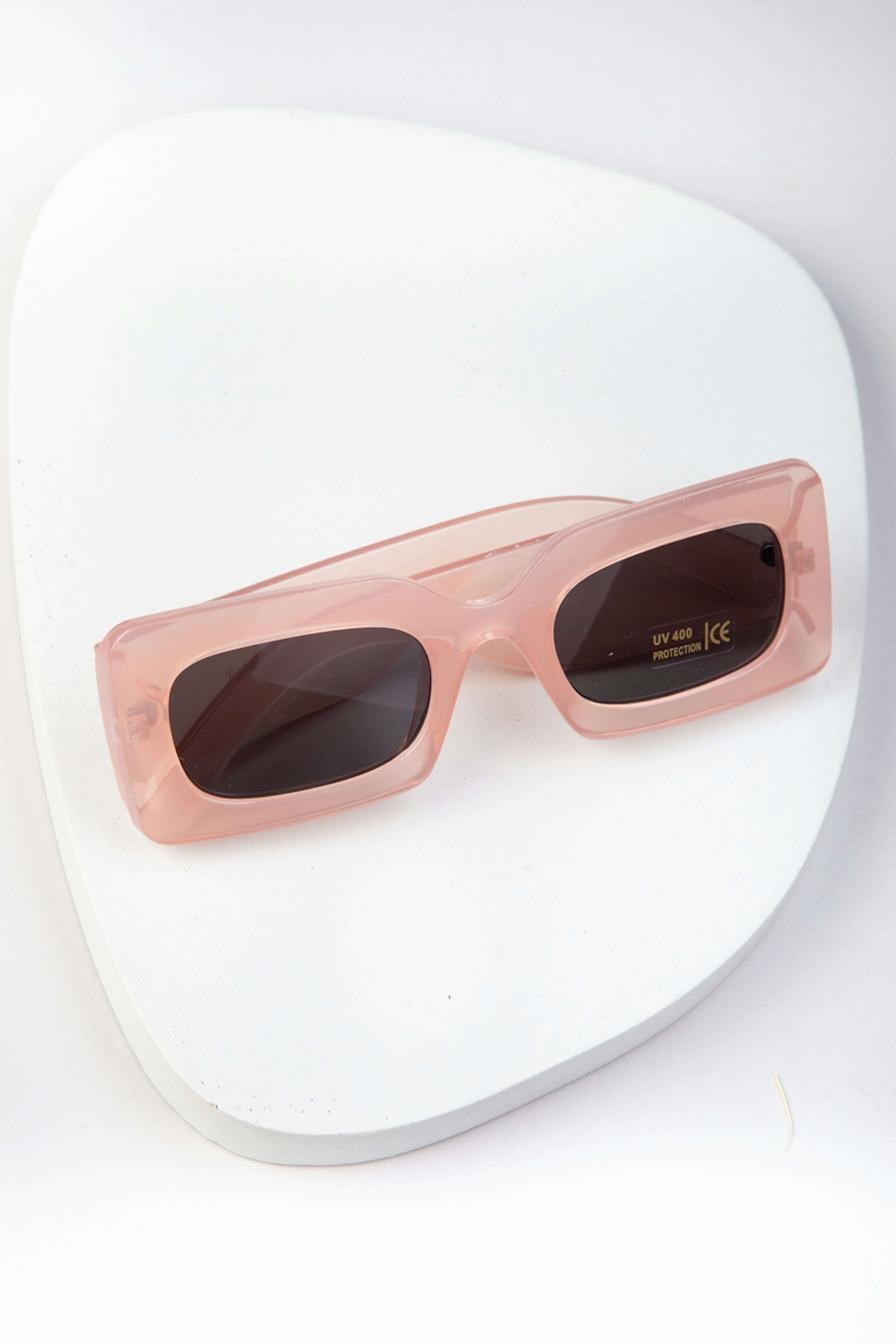 โข Lunettes de soleil ร la forme rectangle tendance โข Coloris rose pรขle