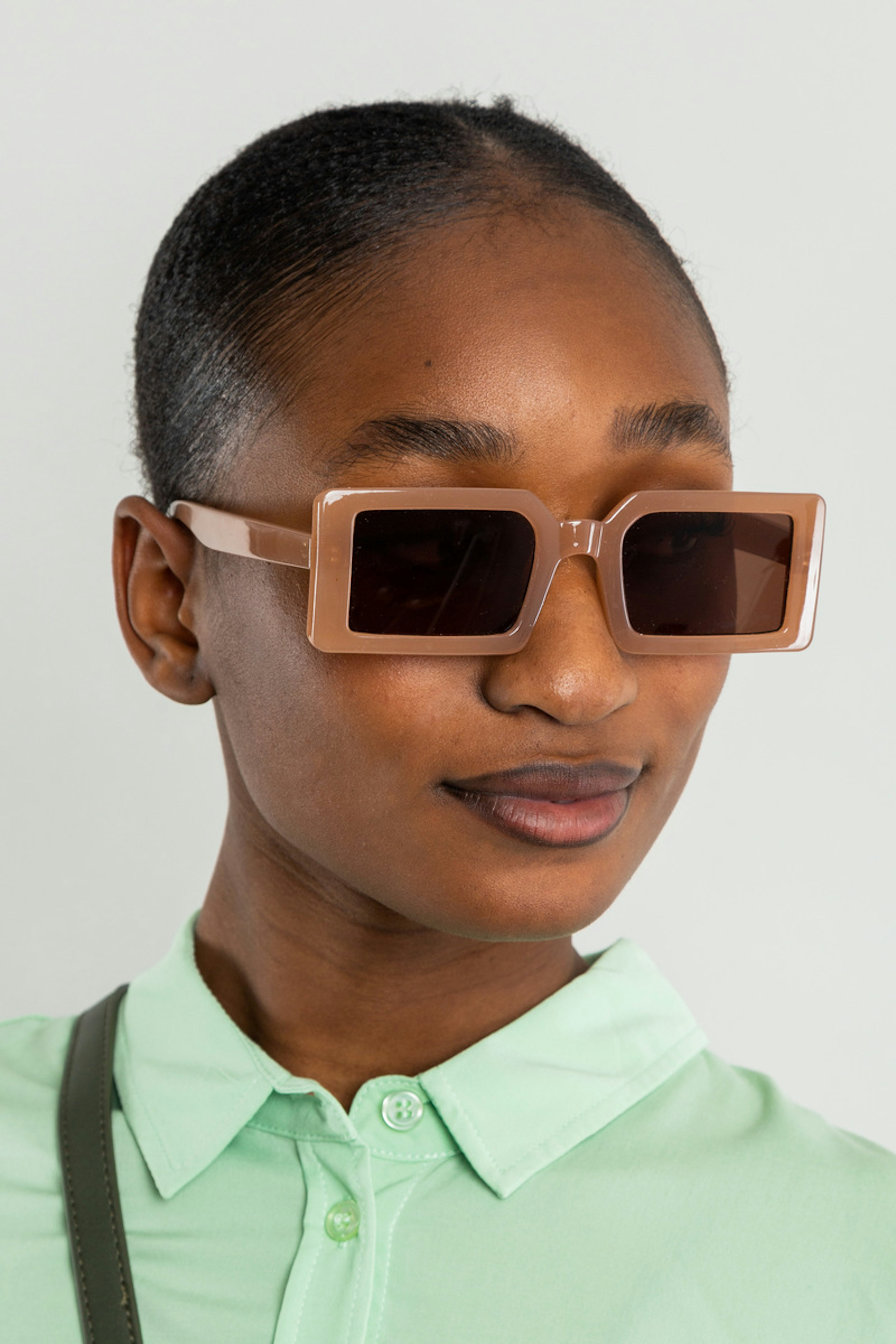 โข Lunettes de soleil rectangulaire โข Couleur unie beige โข Monture large