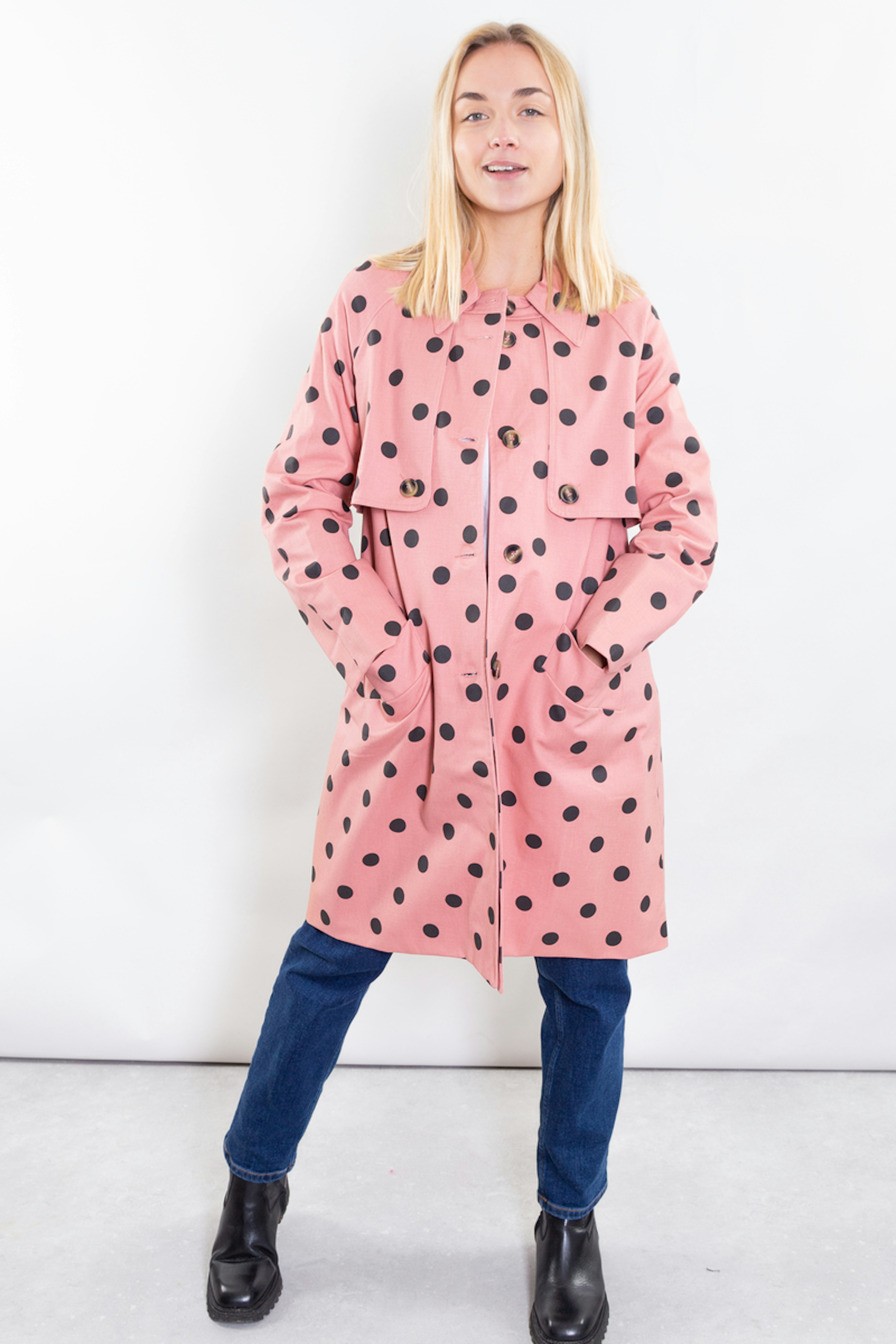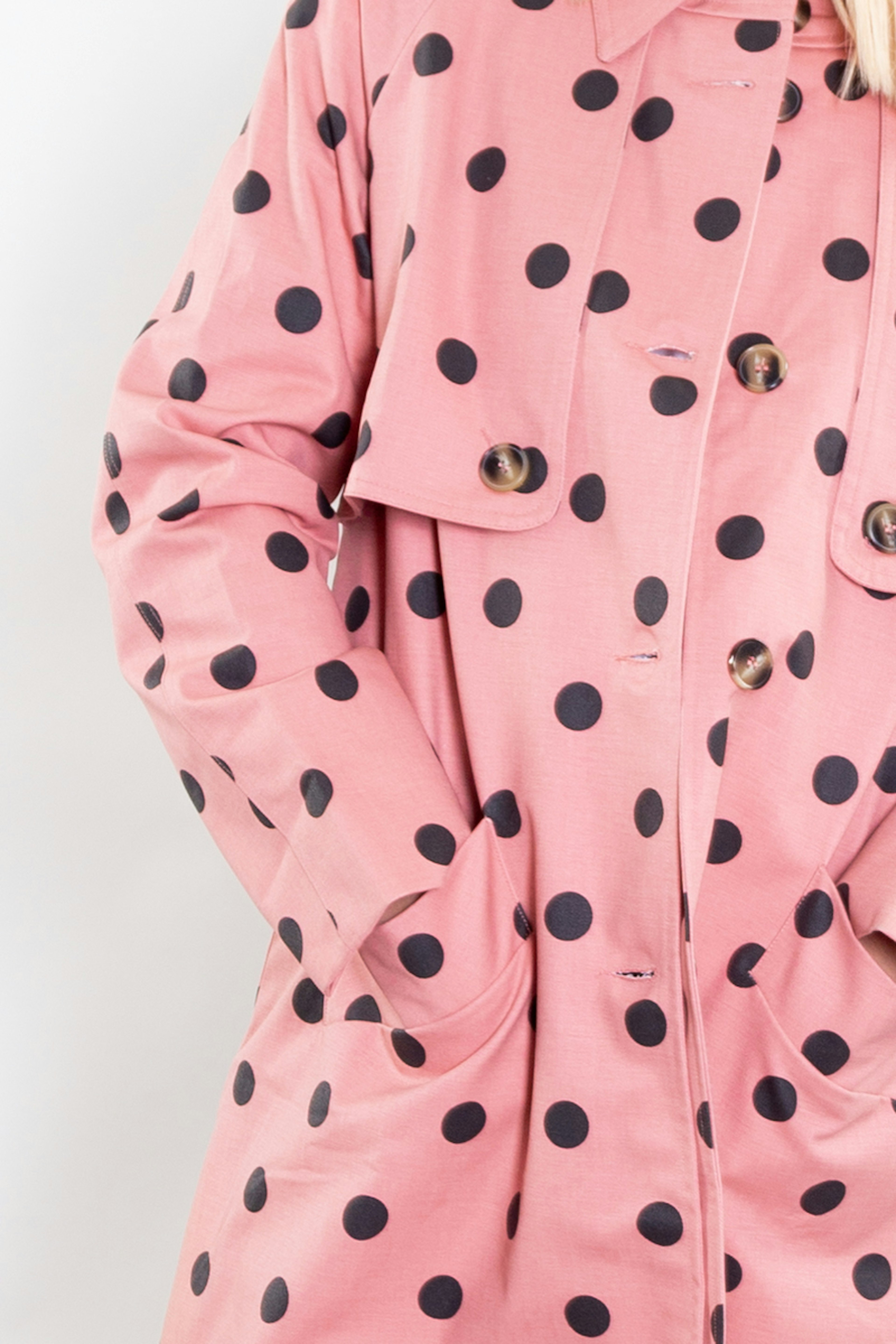 Le manteau impermรฉable avec ses pois iconiques ! โข Manteau long impermรฉable โข Imprimรฉ pois iconiques โข Prenez votre taille habituelle