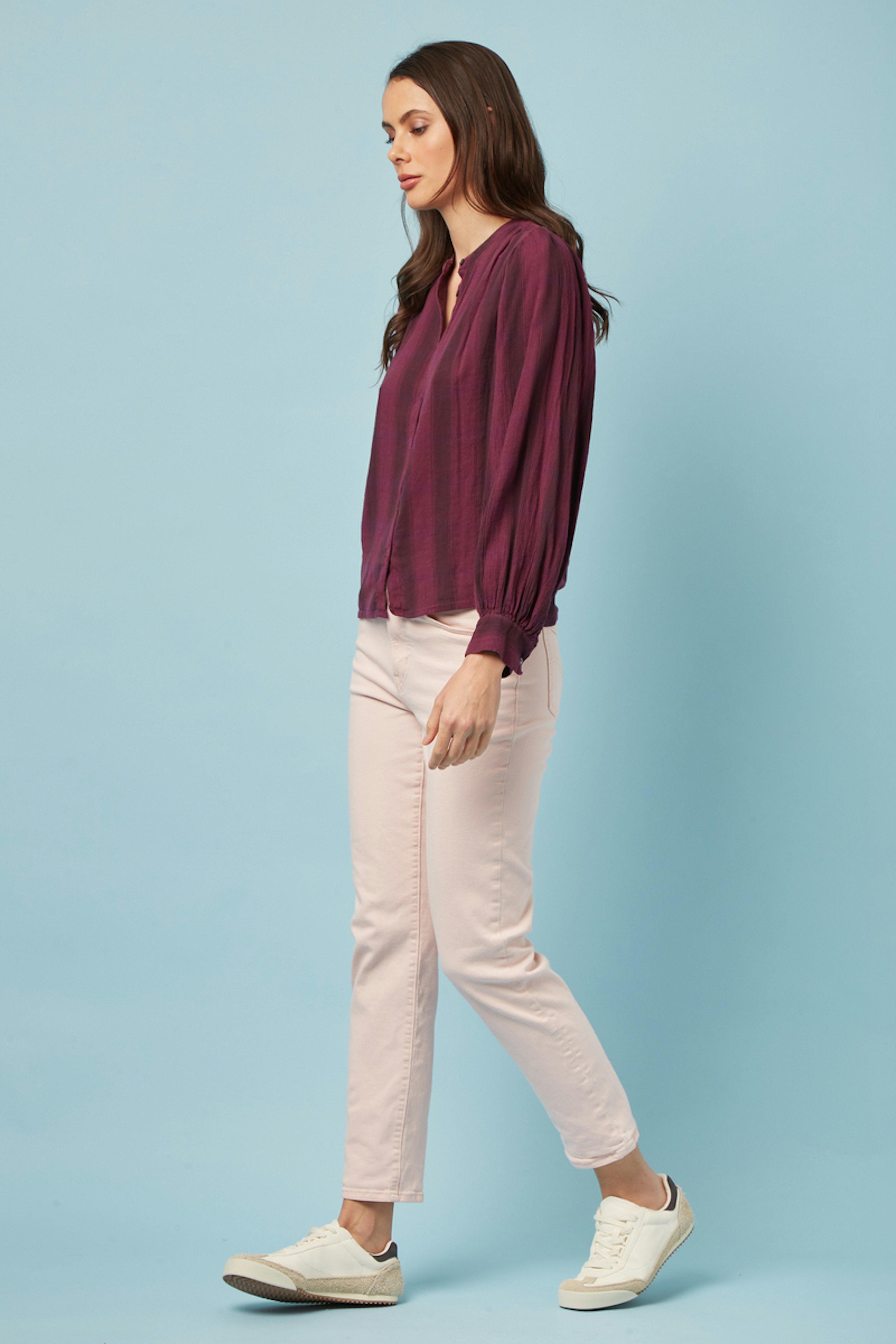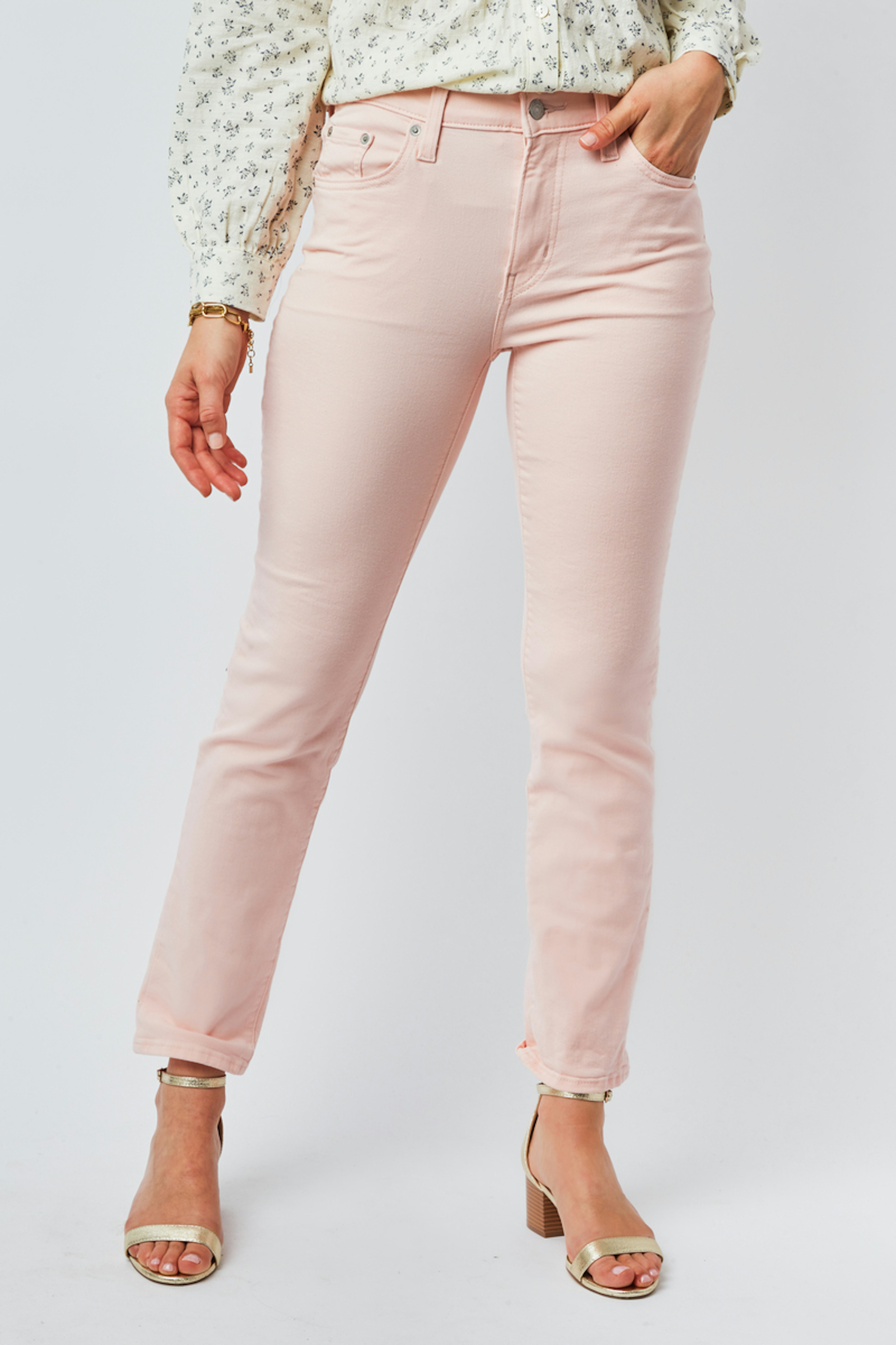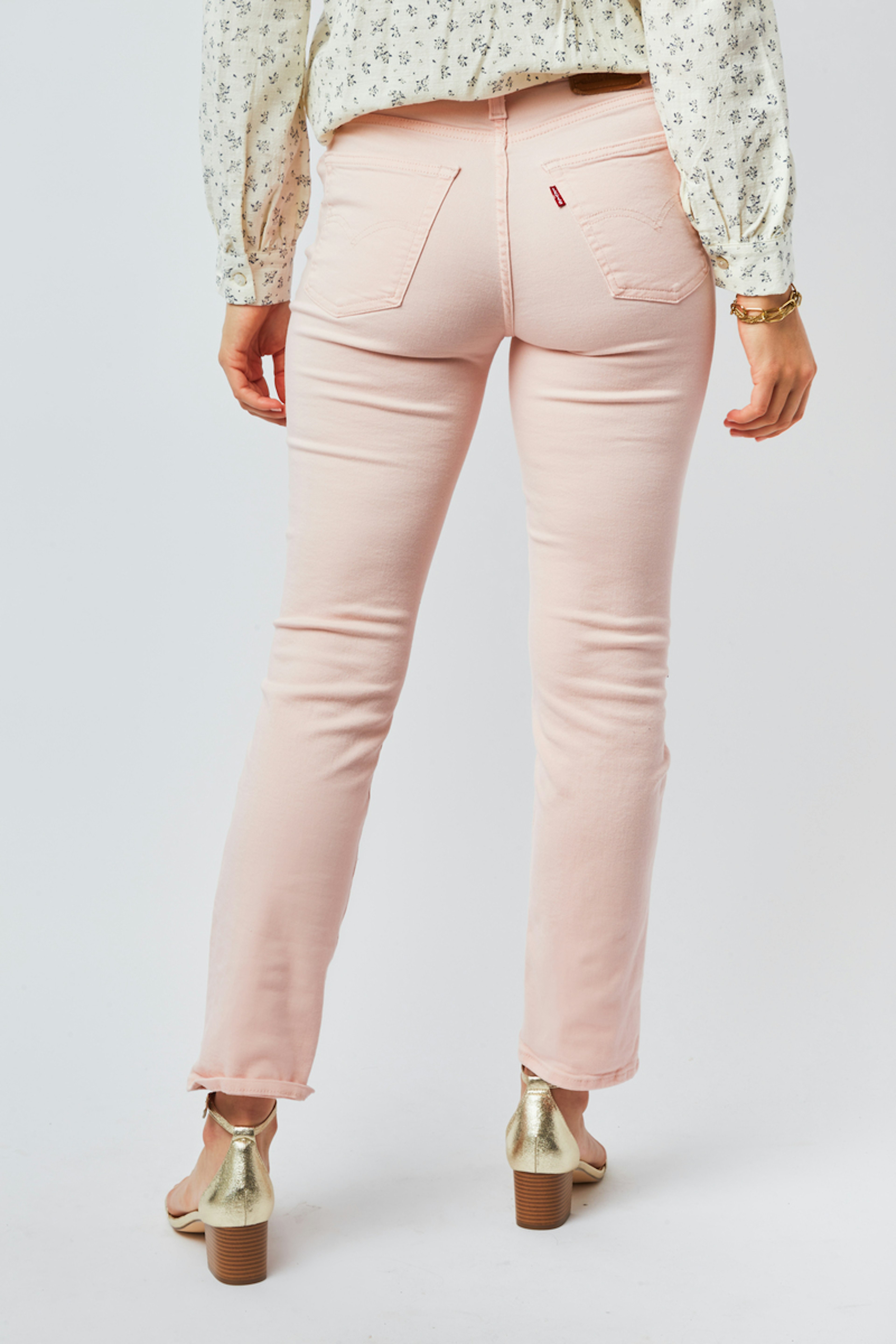 โข Jean femme โข Jambes droites โข Coupe slim des hanches aux cuisses โข Taille haute โข Fermeture zippรฉe โข Modรจle ร 5 poches โข Attention : couleur rose