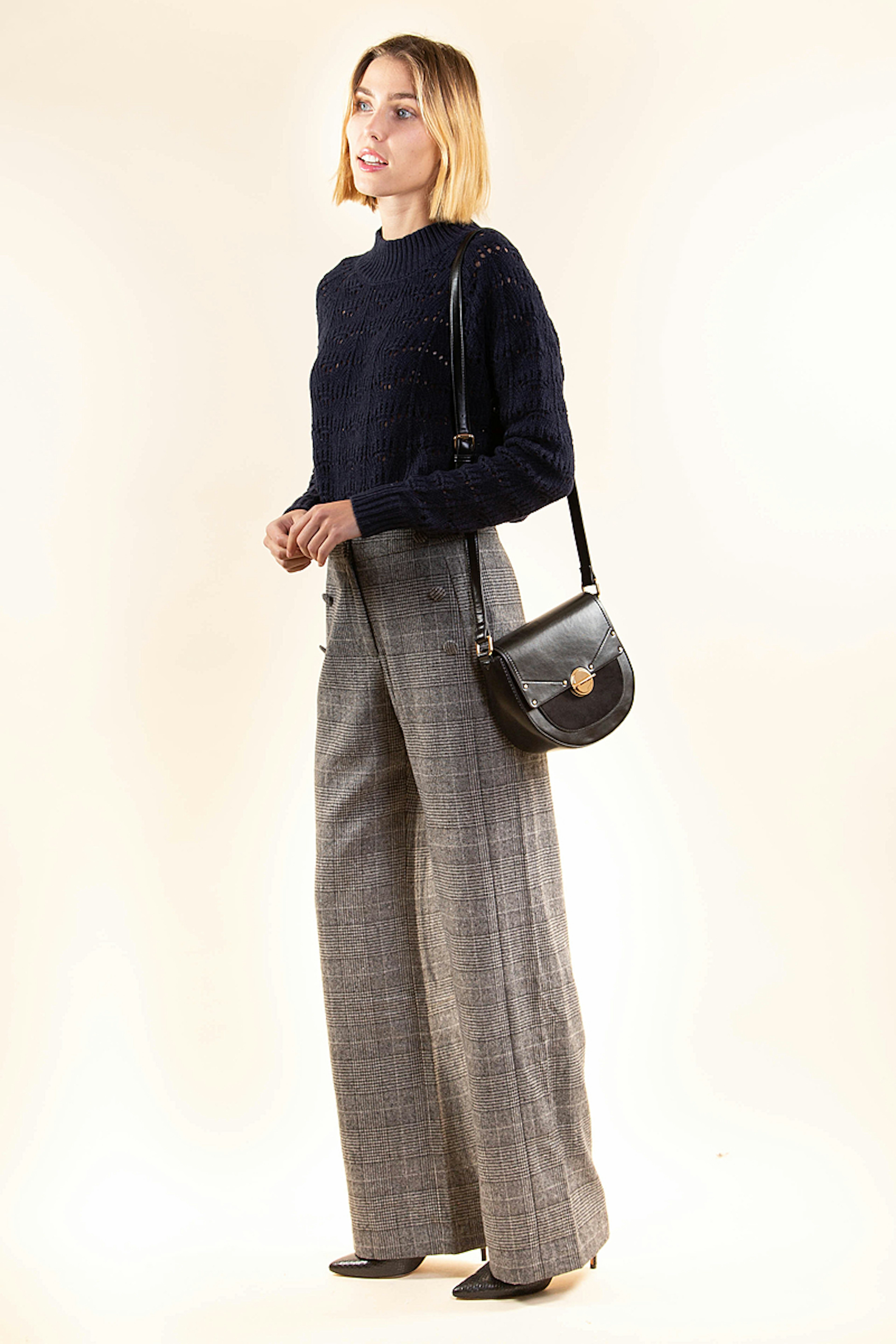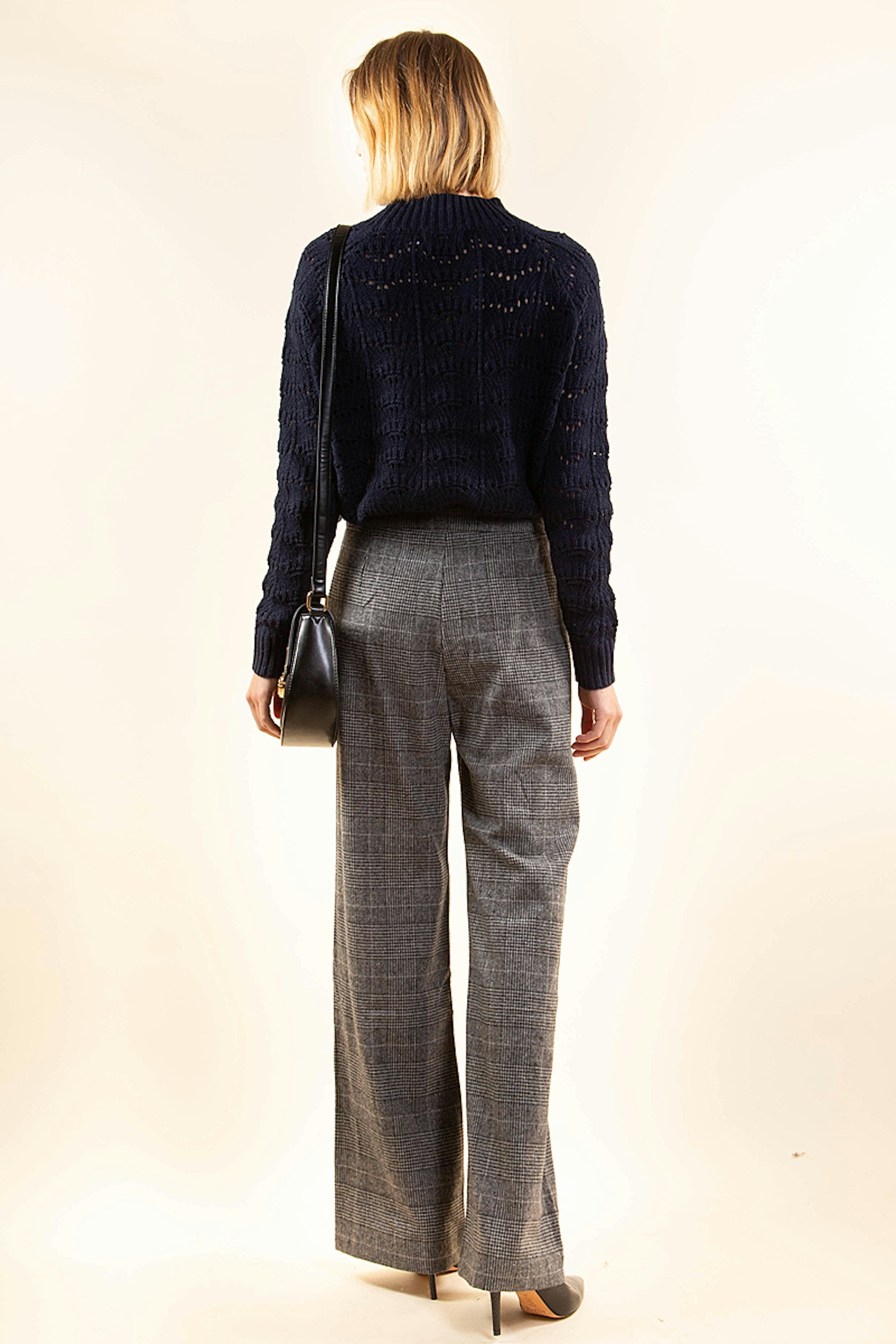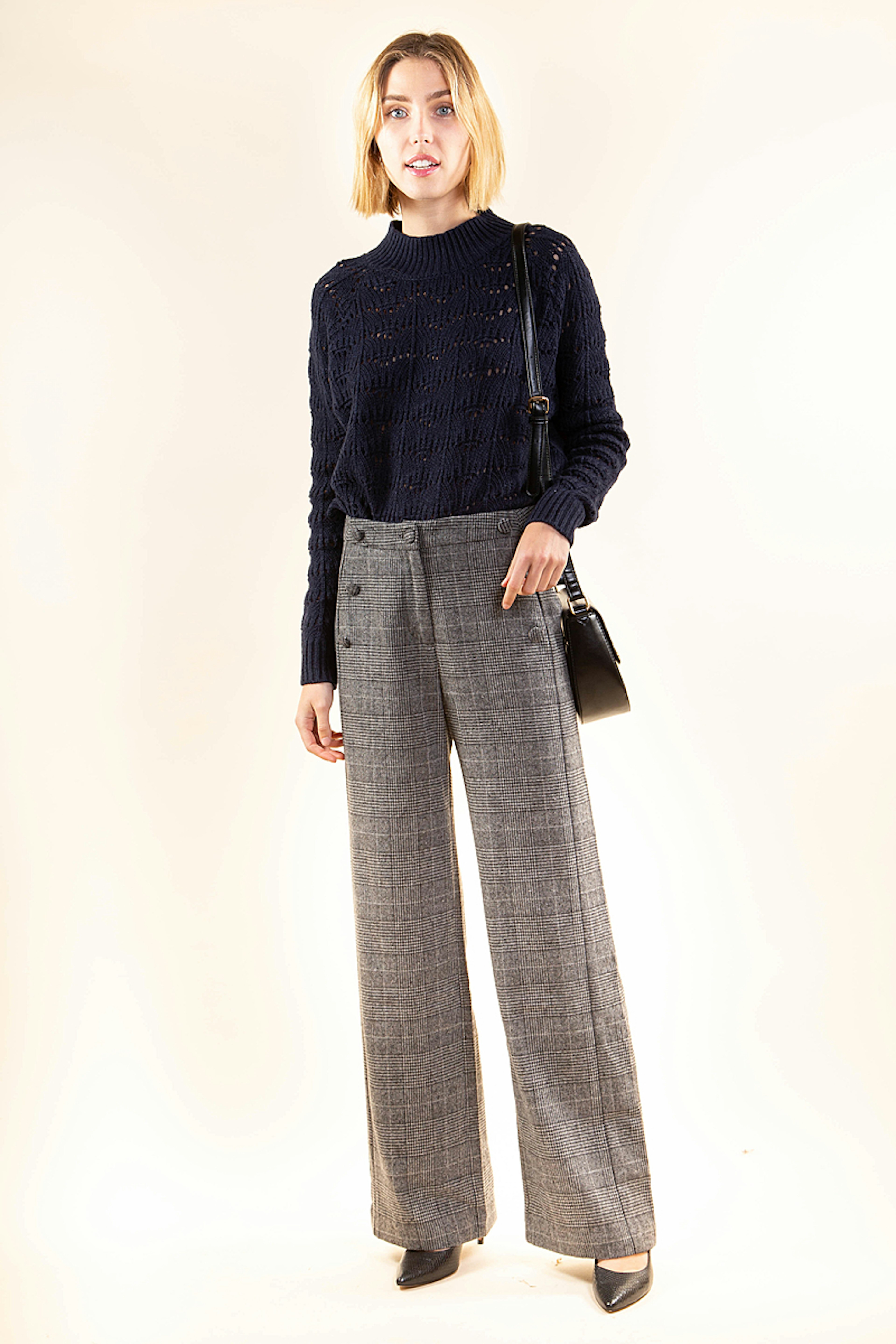Vous cherchez un pantalon chic pour l'hiver ? On a dรฉgotรฉ pour vous le pantalon ร pont Auguste. Conรงu dans un tissu en laine ร carreaux gris, on aime le dรฉtail de ses boutons recouverts et ses jambes รฉvasรฉes. A porter avec une paire de bottines hautes pour encore plus de classe.