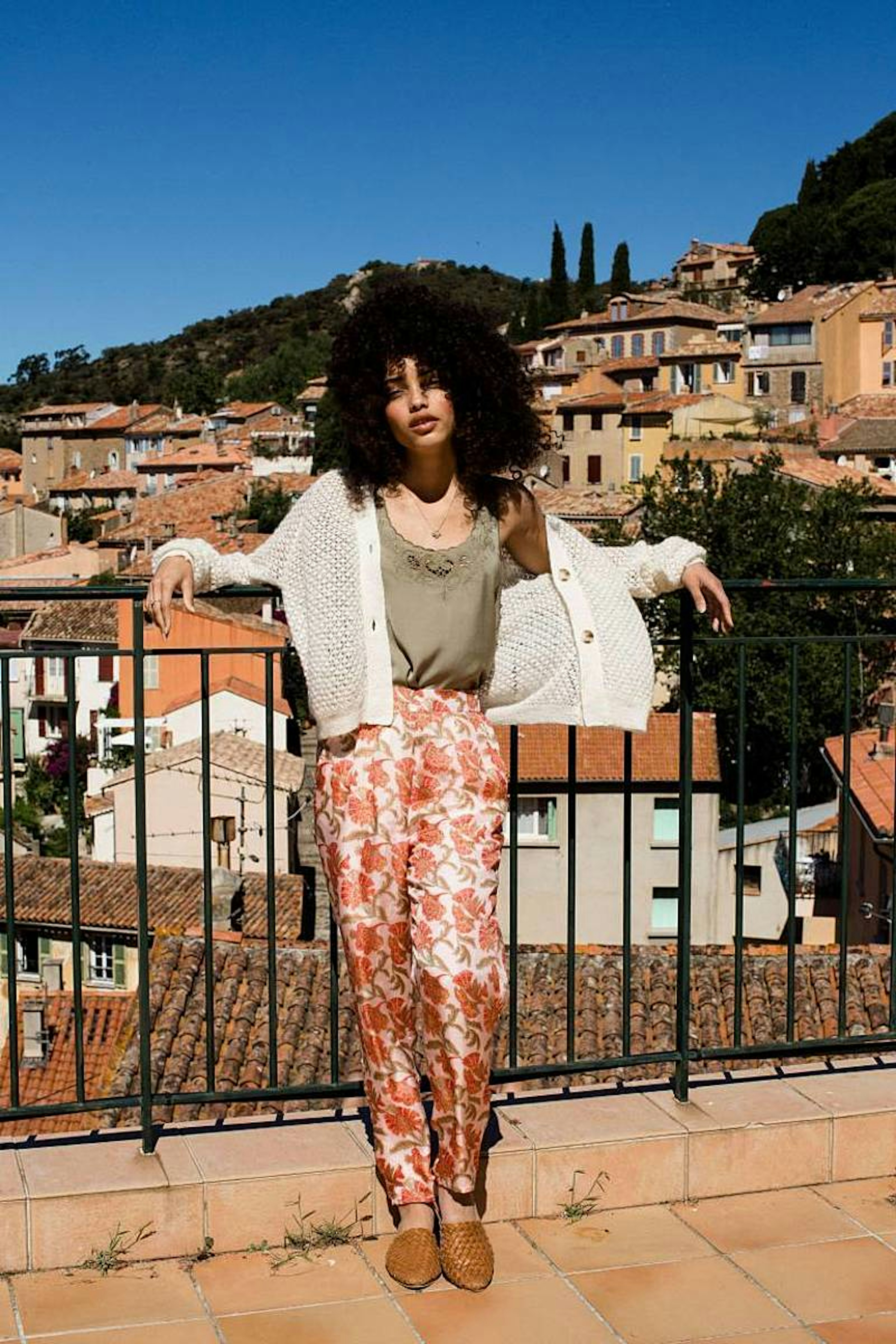 โข Pantalon bohรจme chic ร coupe droite en soie pour femme โข Imprimรฉ floral โข Taille haute โข Poches latรฉrales ร l'avant โข Matiรจre fluide et lรฉgรจre