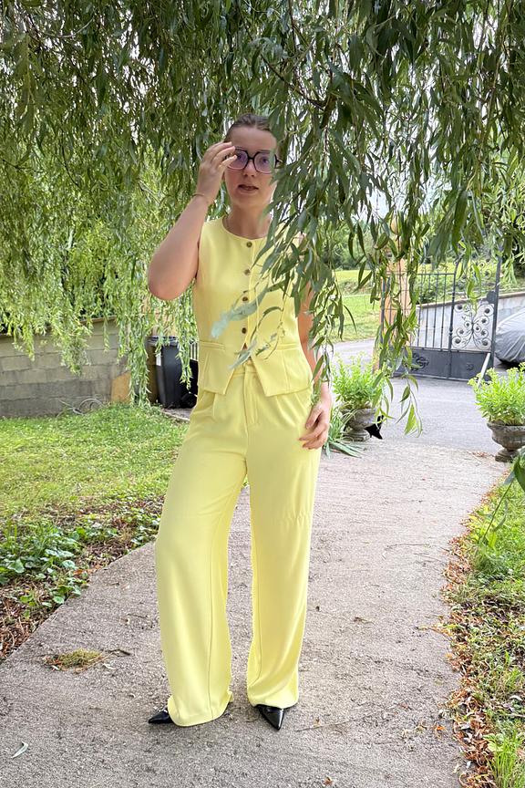 Associez ce pantalon ร  un haut lรฉger ou un dรฉbardeur colorรฉ pour une allure estivale รฉclatante. โ€ข Pantalon large โ€ข Taille haute flatteuse โ€ข Jambes longues et fluides โ€ข Fermeture invisible โ€ข ร‰clat jaune lumineux