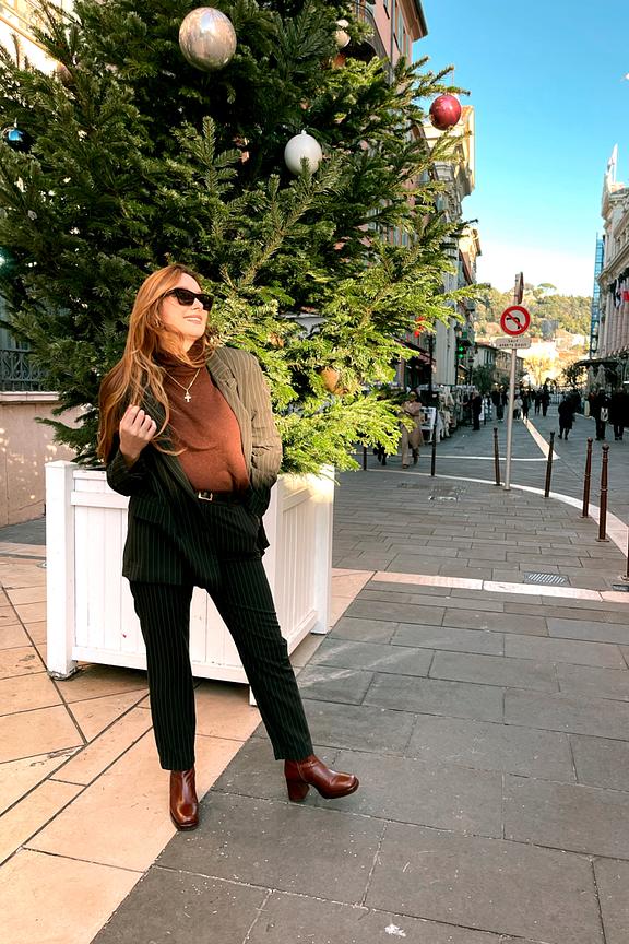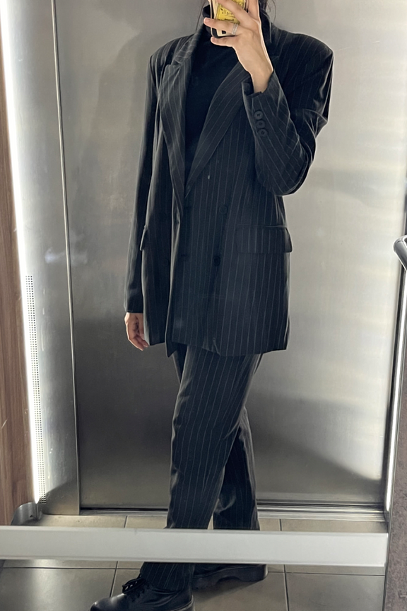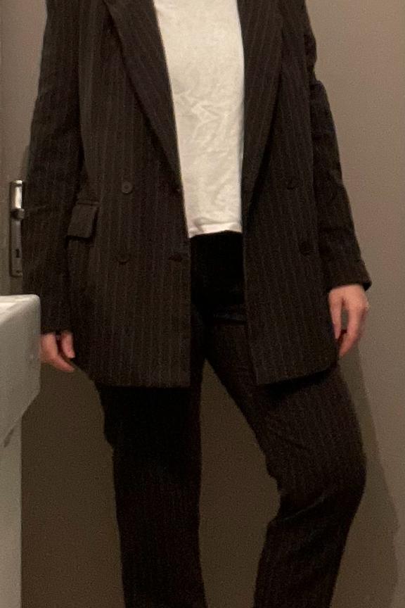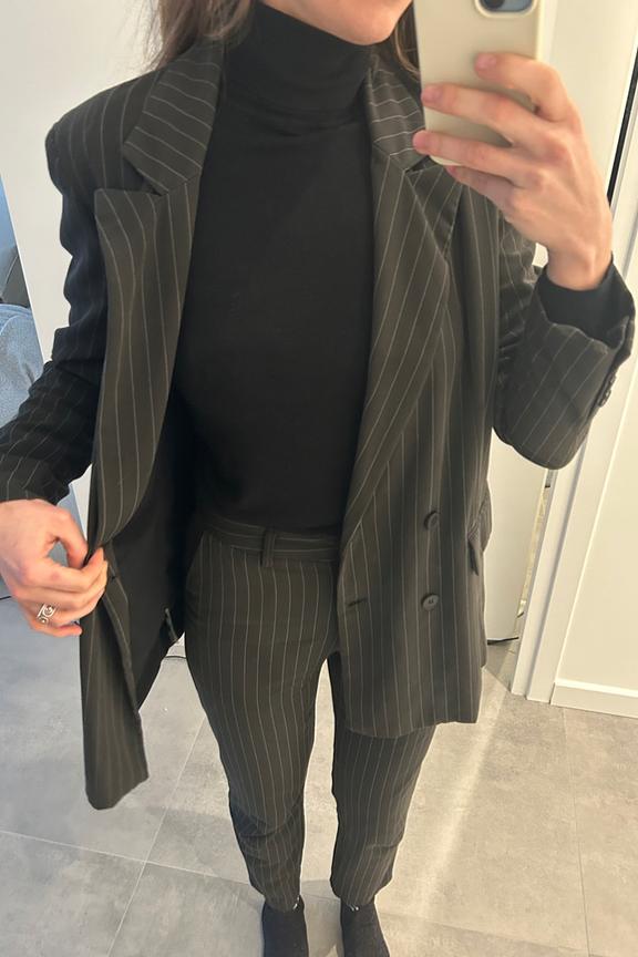 โข Pantalon รฉlรฉgant โข Imprimรฉ ร rayures fines blanches sur fond noir โข Coupe carotte โข Contient du polyester recyclรฉ