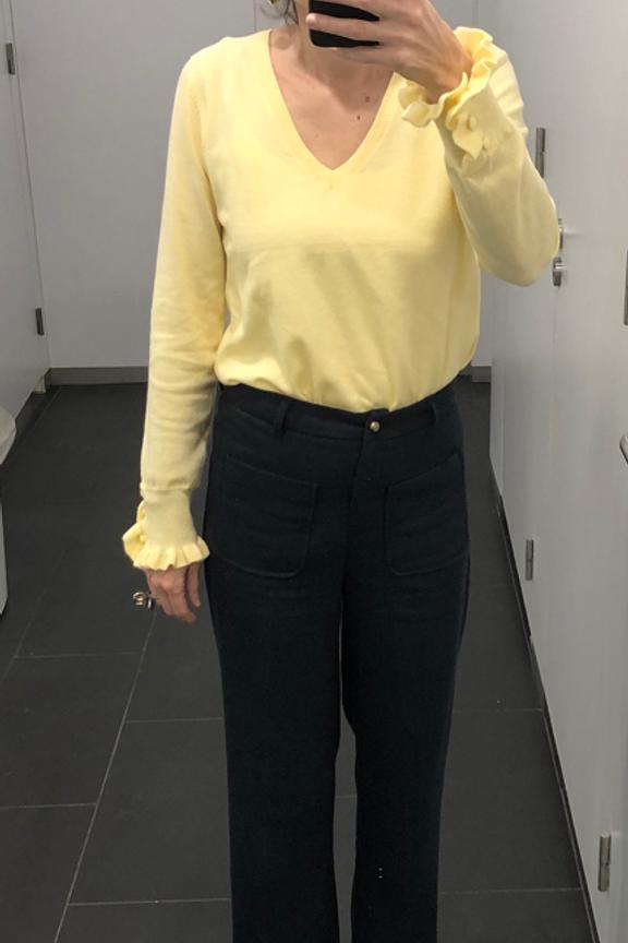 Optez pour un look chic avec des mocassins vernis et un pull à col roulé. Idéal pour les journées hivernales en ville. • Pantalon coupe large • Taille haute flatteuse • Poches plaquées devant • Jambe longue et fluide • Fermeture dissimulée