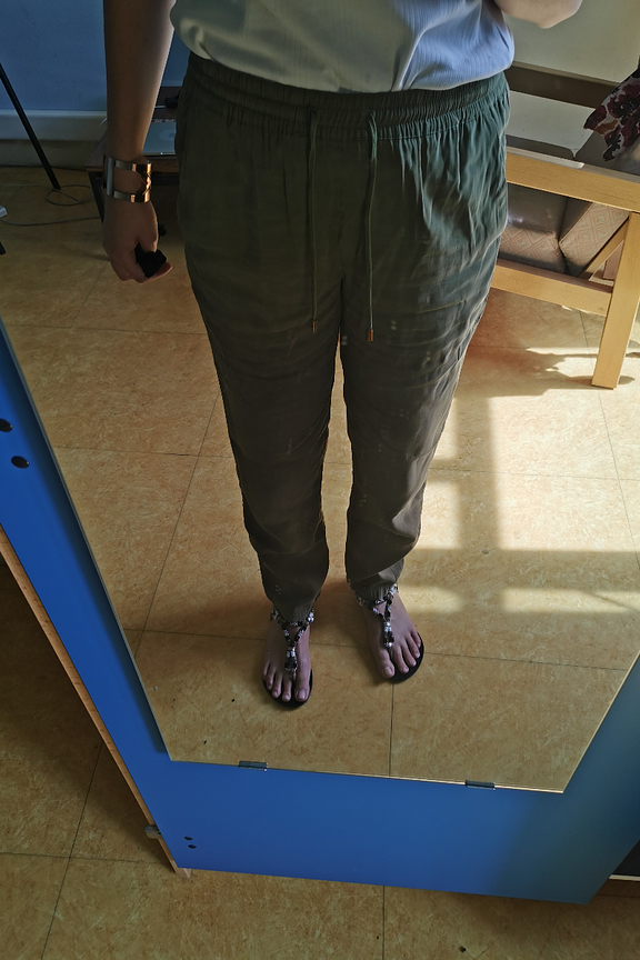 โข Pantalon vert kaki โข Taille รฉlastiquรฉe mi-haute โข Lien de serrage sur le devant โข Tissu doux et confortable โข Contient 80% de viscose certifiรฉe รฉcovero