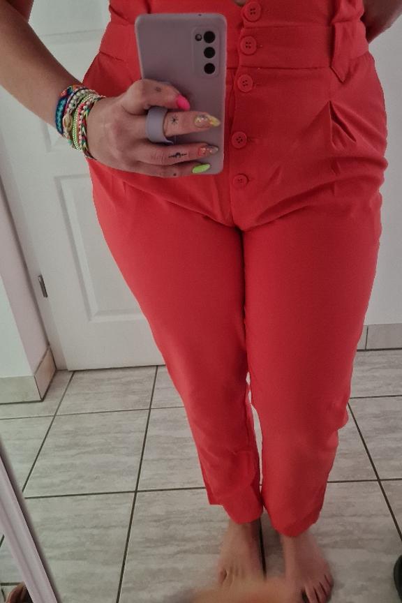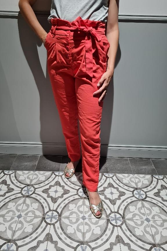 โข Pantalon lรฉger corail โข Forme paperbag cintrรฉ par une ceinture โข Braguette boutonnรฉe โข Contient du lyocell