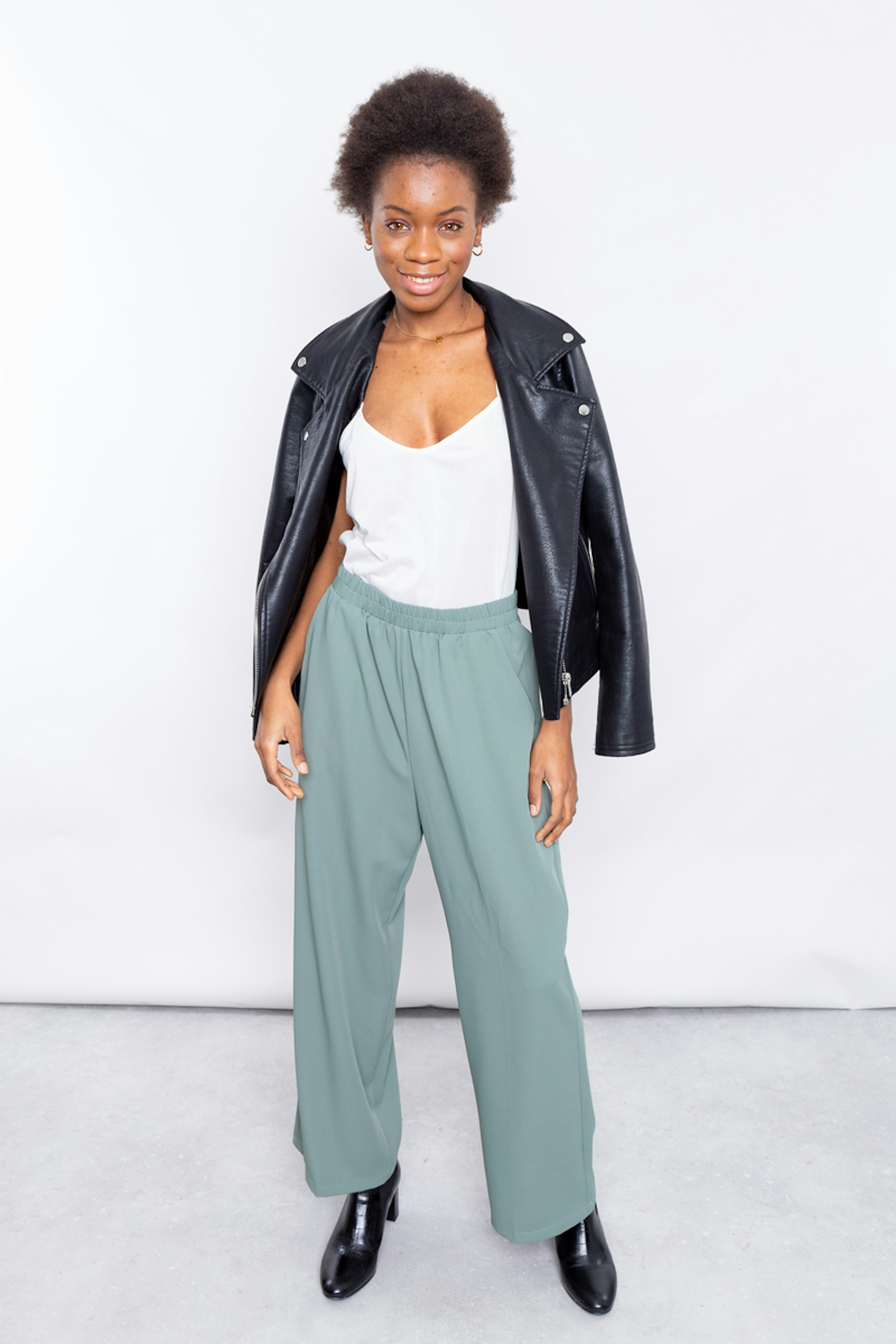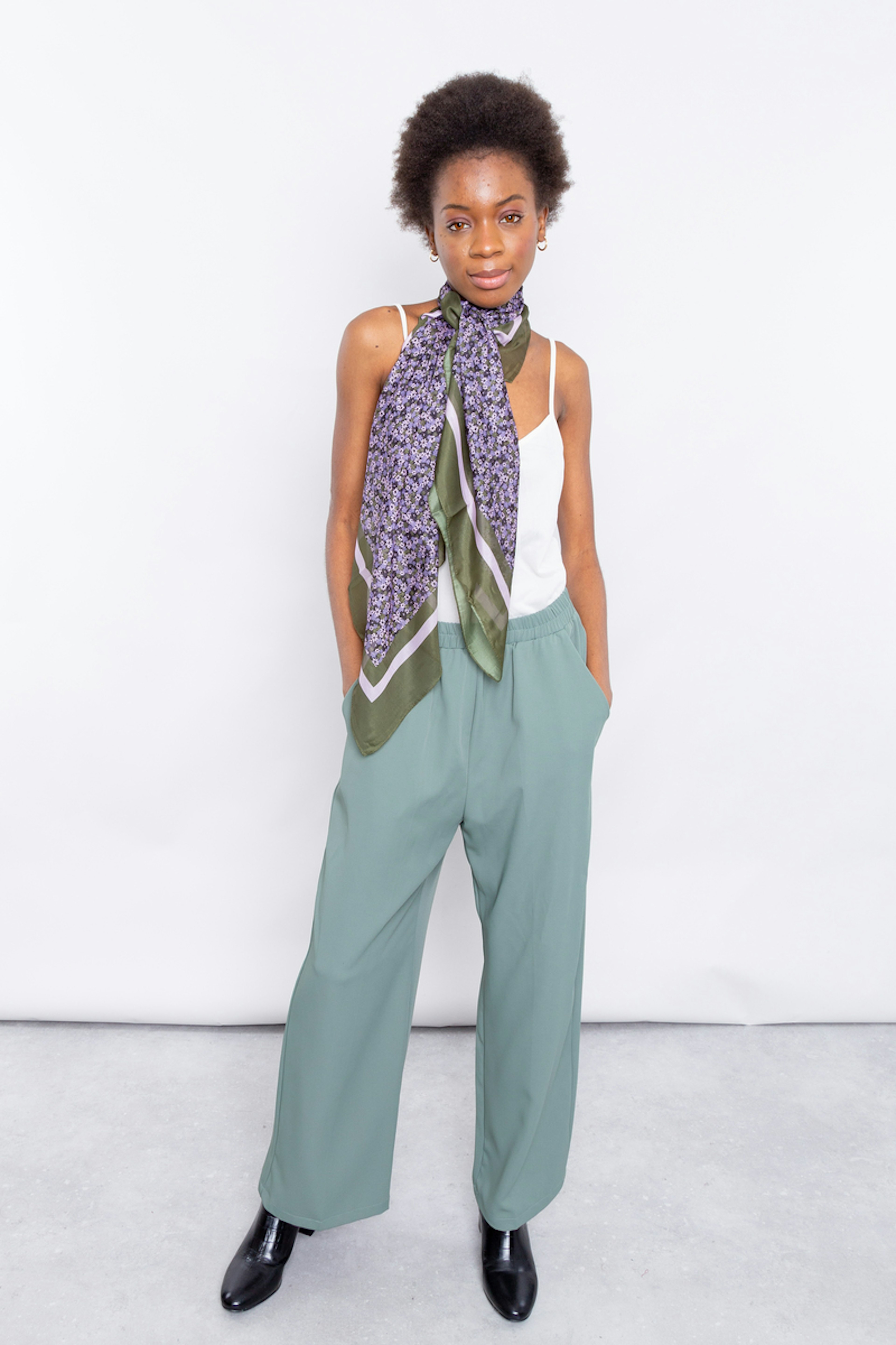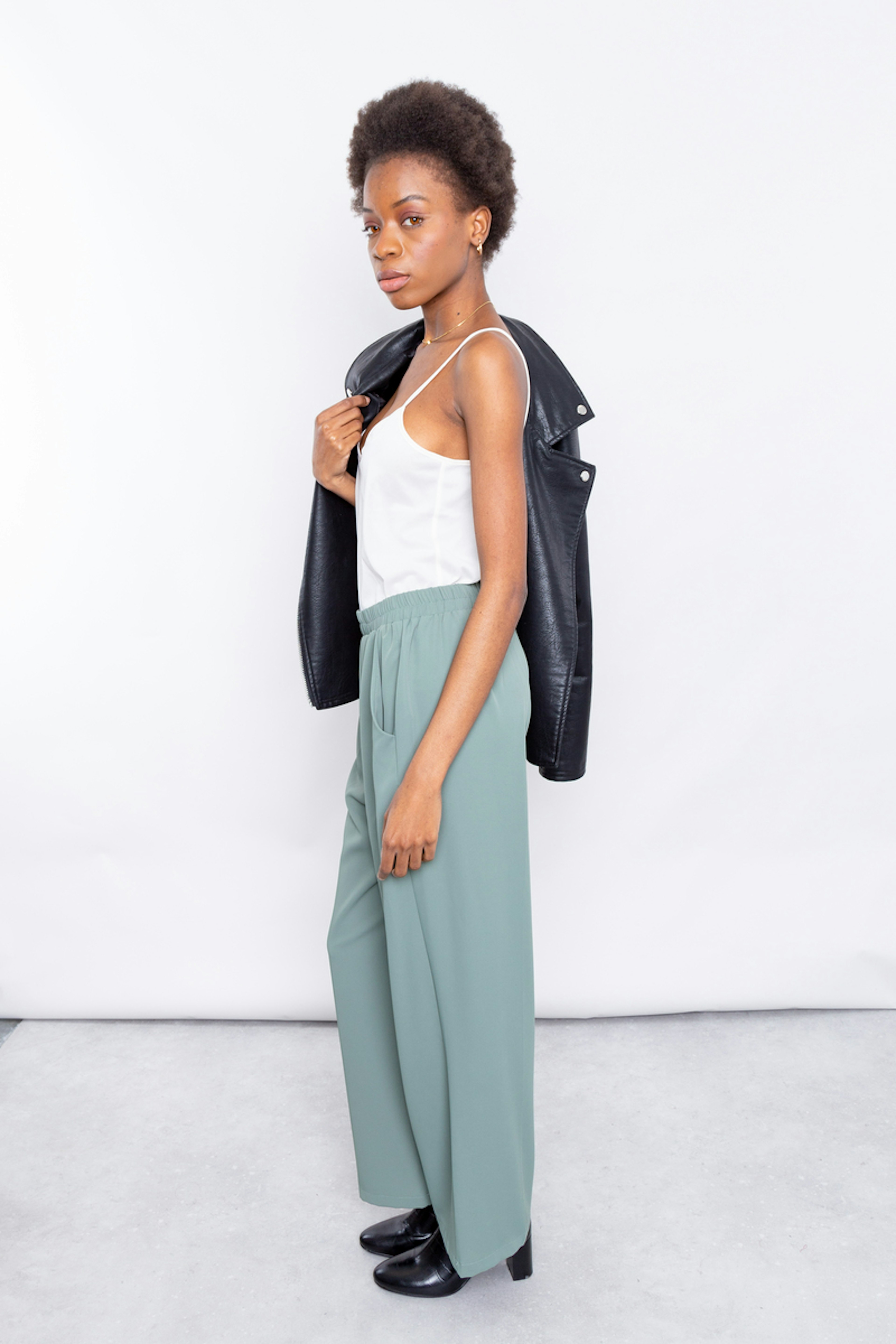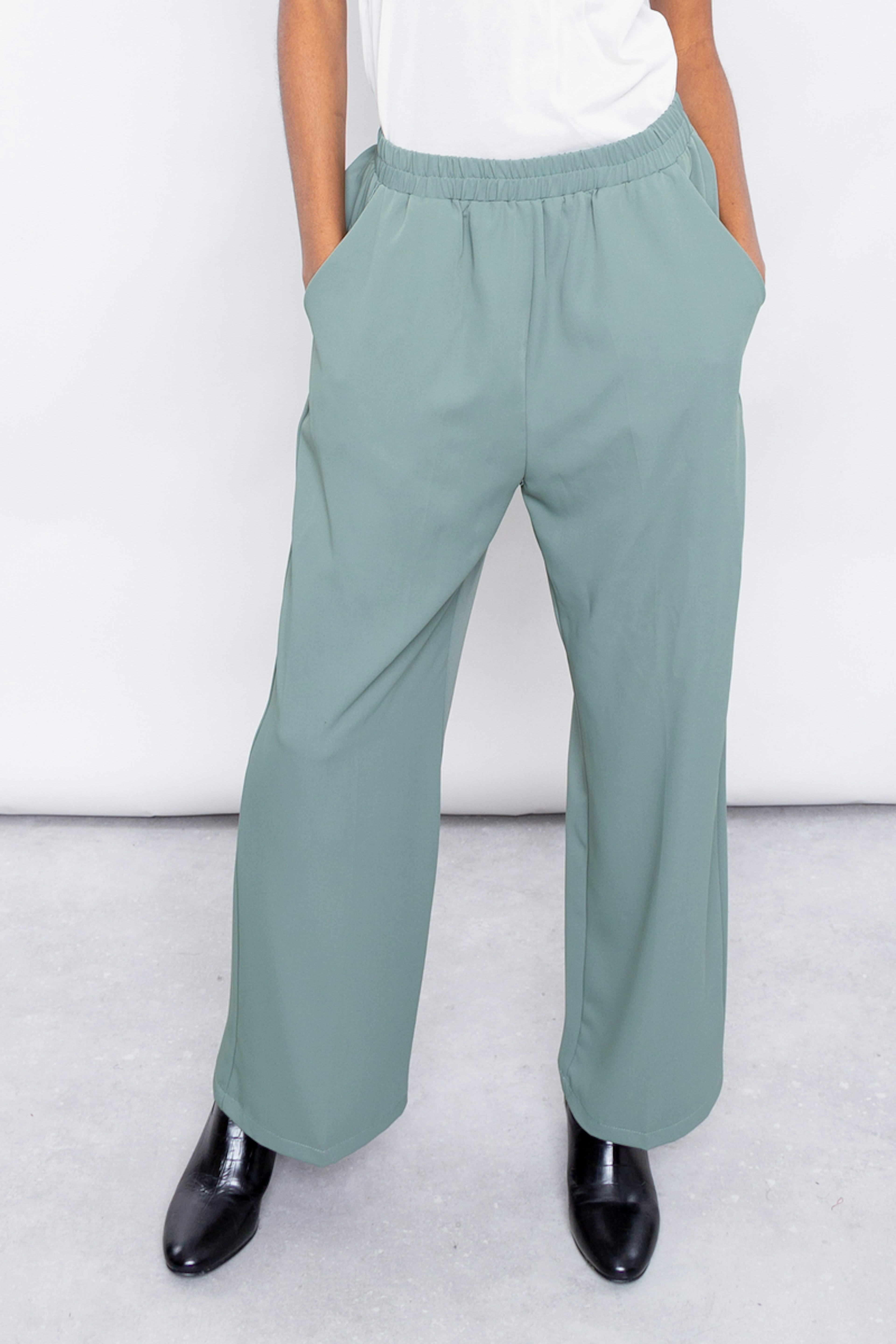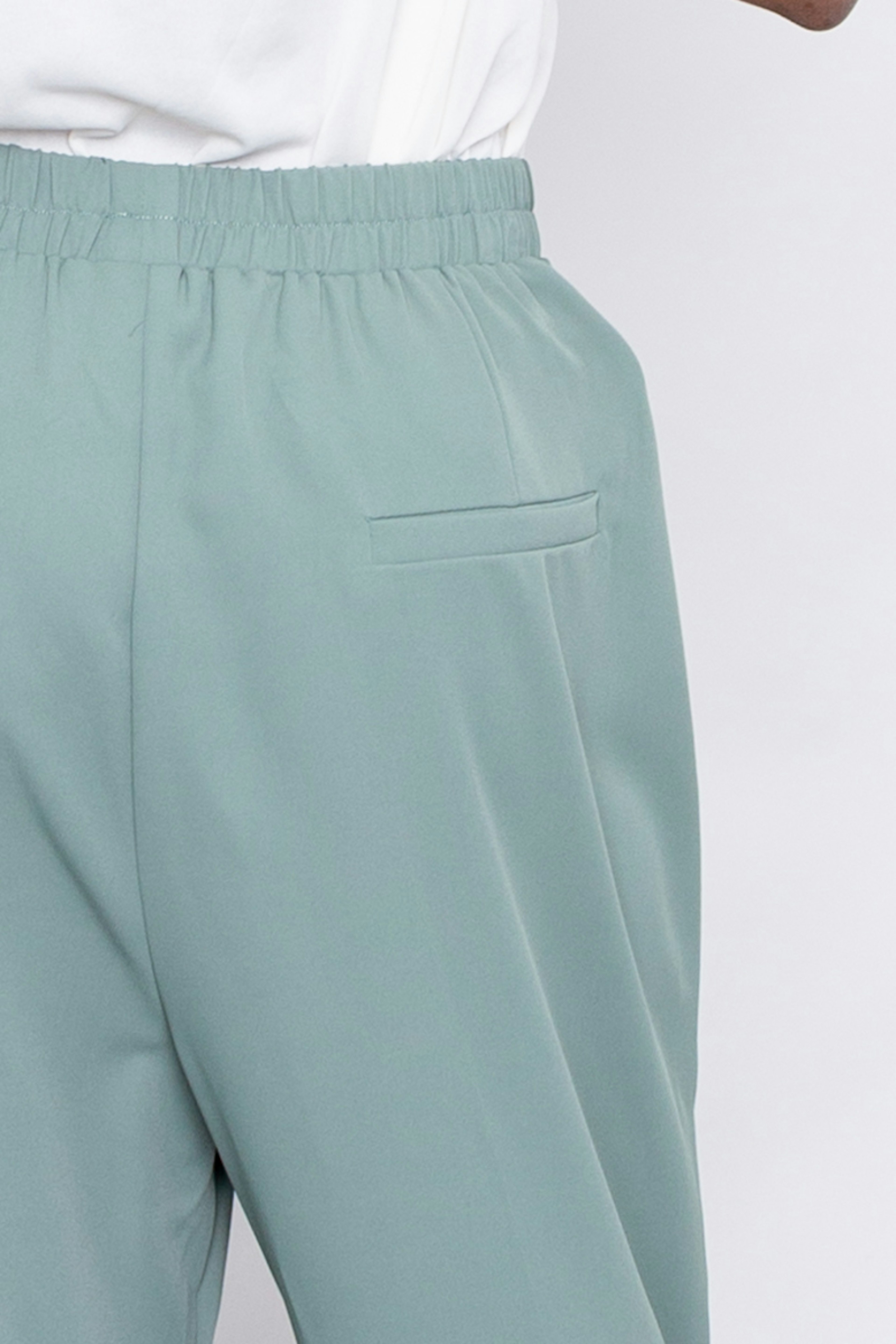 โข Pantalon large vert taille haute รฉlastiquรฉe โข Coupe droite โข Longueur 7/8รจme โข Poches italiennes sur le devant et poche passepoilรฉe ร l'arriรจre