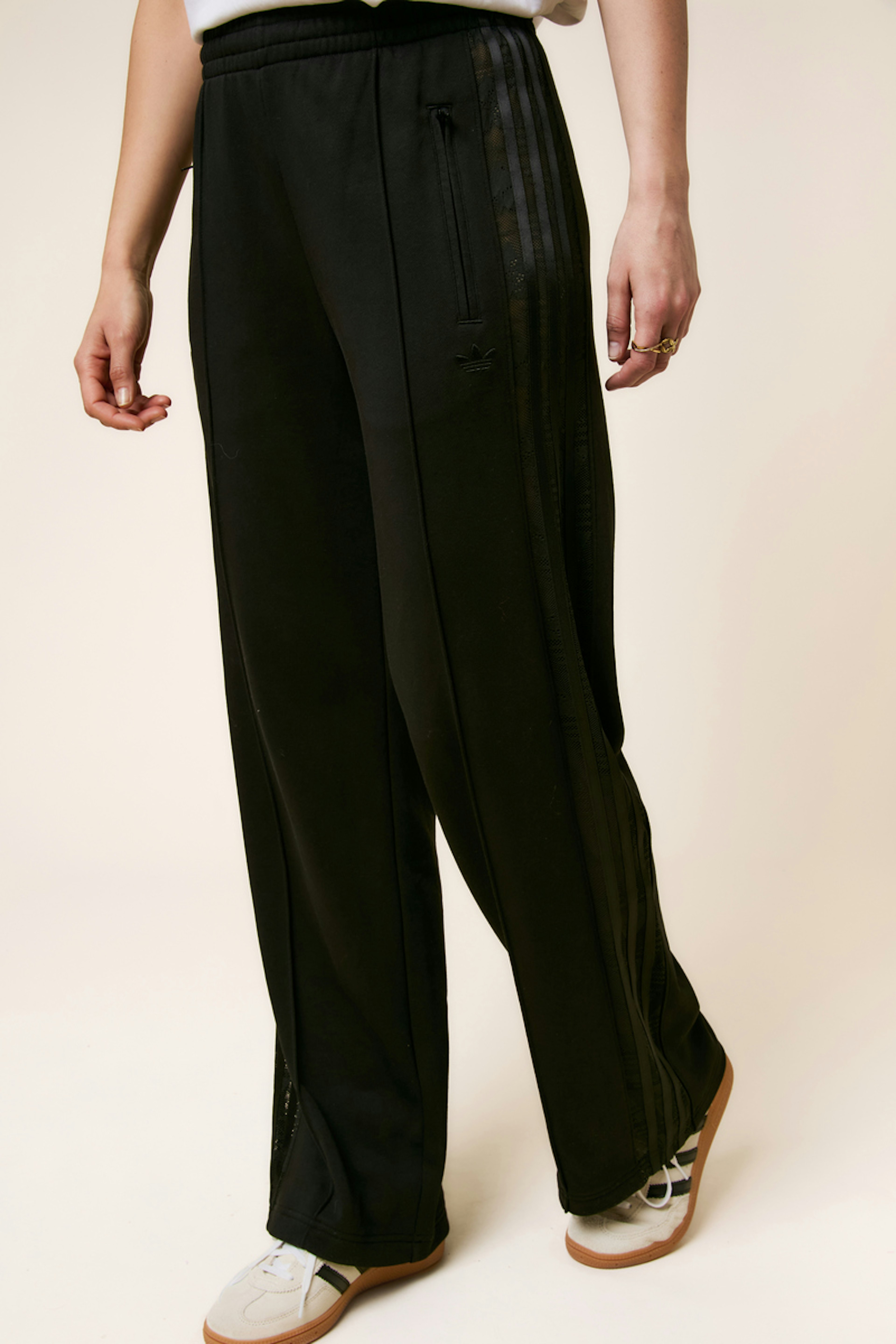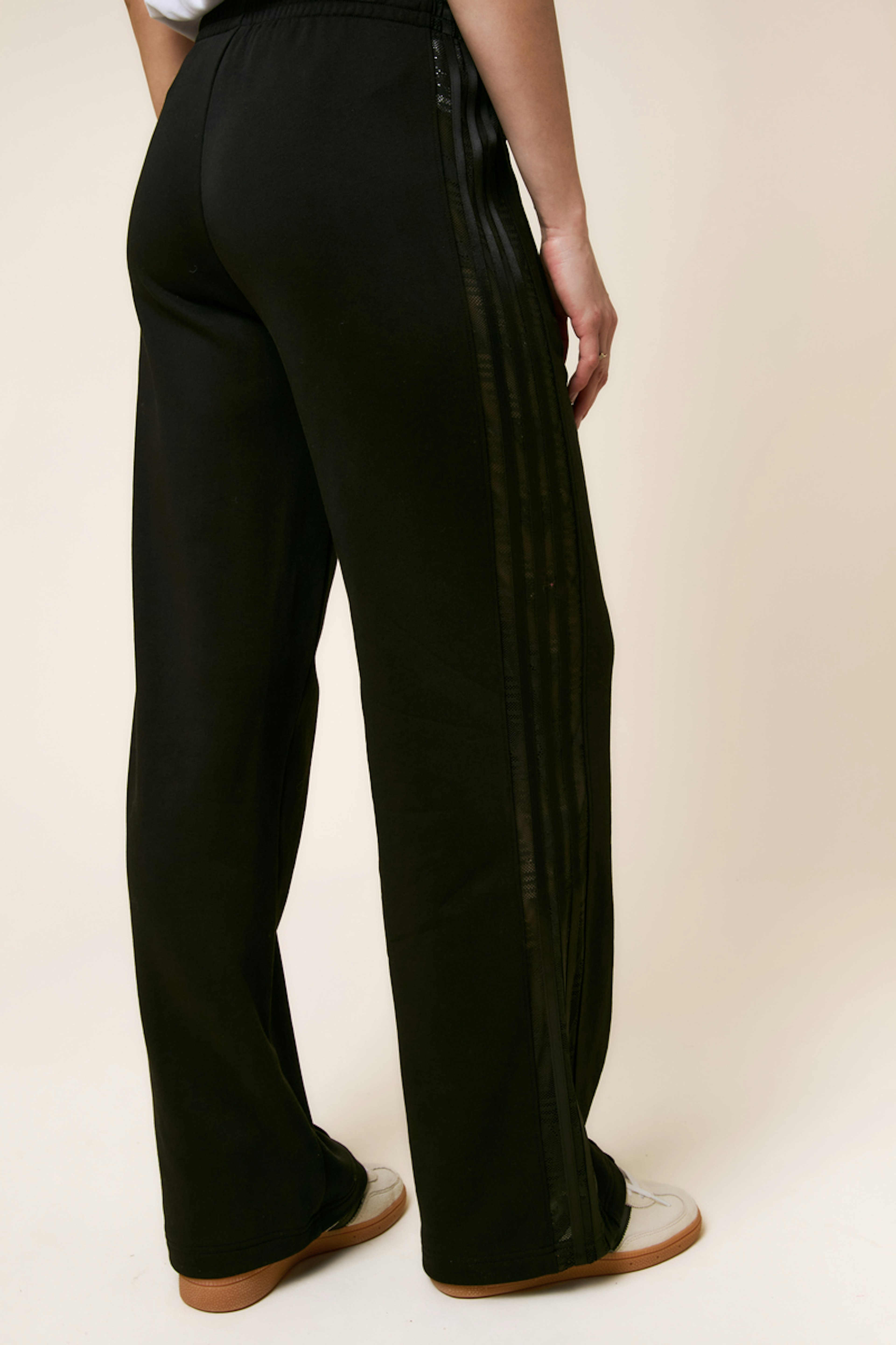 Associez ce pantalon élégant à des baskets blanches et un top ajusté pour une allure à la fois chic et décontractée, parfait pour toute occasion décontractée. • Pantalon ample • Taille élastique • Bandes latérales • Longueur pleine • Poches intégrées