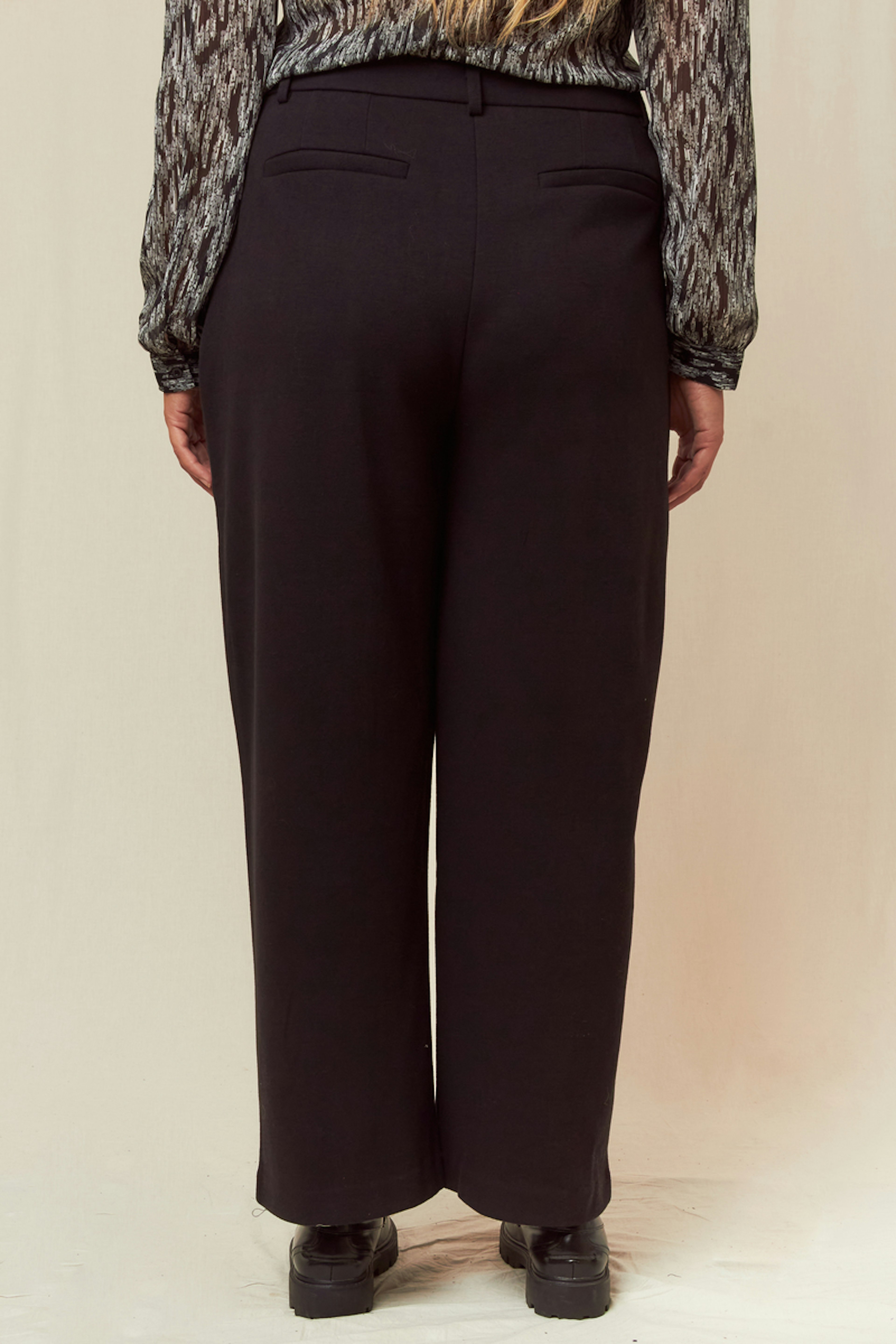 Associez ce pantalon à une blouse soyeuse et des mocassins pour un look chic et intemporel. Idéal en toute saison ! • Pantalon coupe droite • Taille haute • Ceinture intégrée • Poches latérales • Noir élégant