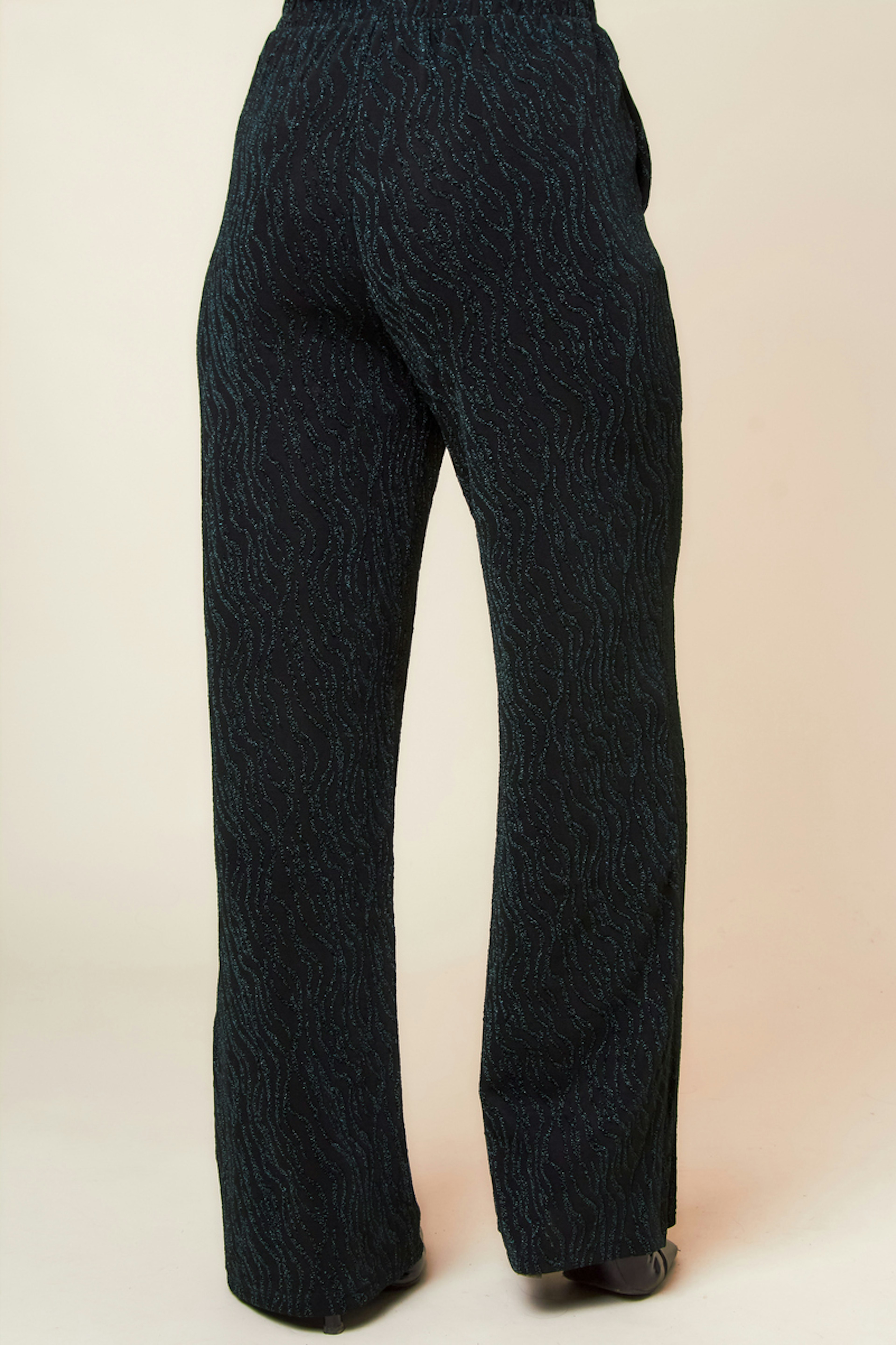 Optez pour un look chic avec ce pantalon texturé. Associez-le à un pull uni et des bottines pour un style hivernal élégant. • Pantalon droit • Coupe ample • Taille élastique • Imprimé subtil • Longueur allant jusqu’aux chevilles