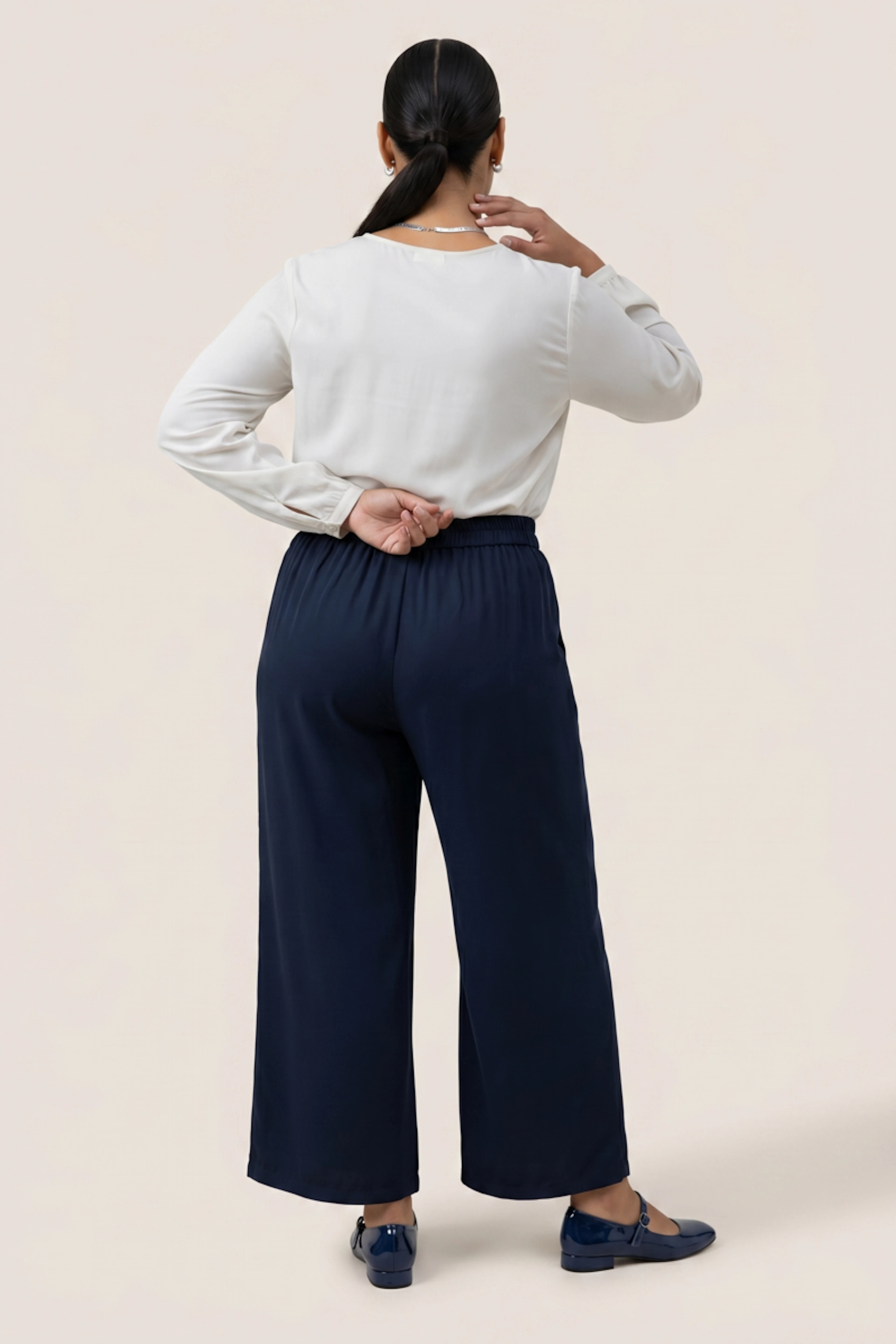 Associez ce pantalon à une blouse fluide et des mocassins pour un look chic et intemporel. Parfait en toute saison. • Pantalon ample • Coupe large élégante • Taille haute flatteuse • Ceinture intégrée • Pli élégant sur le devant