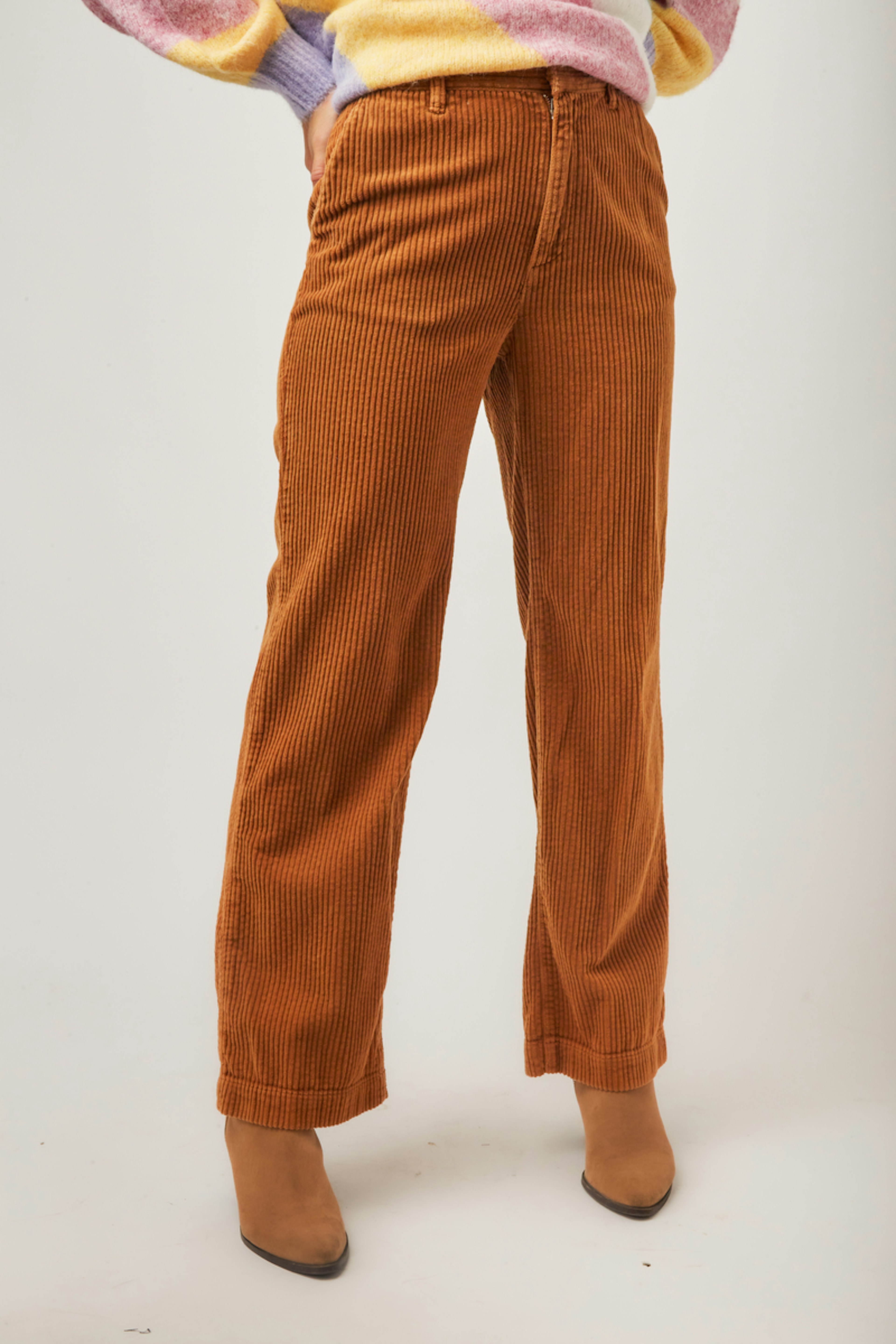 โข Pantalon en velours cรดtelรฉ โข Coupe large โข Taille haute โข Passants pour ceinture