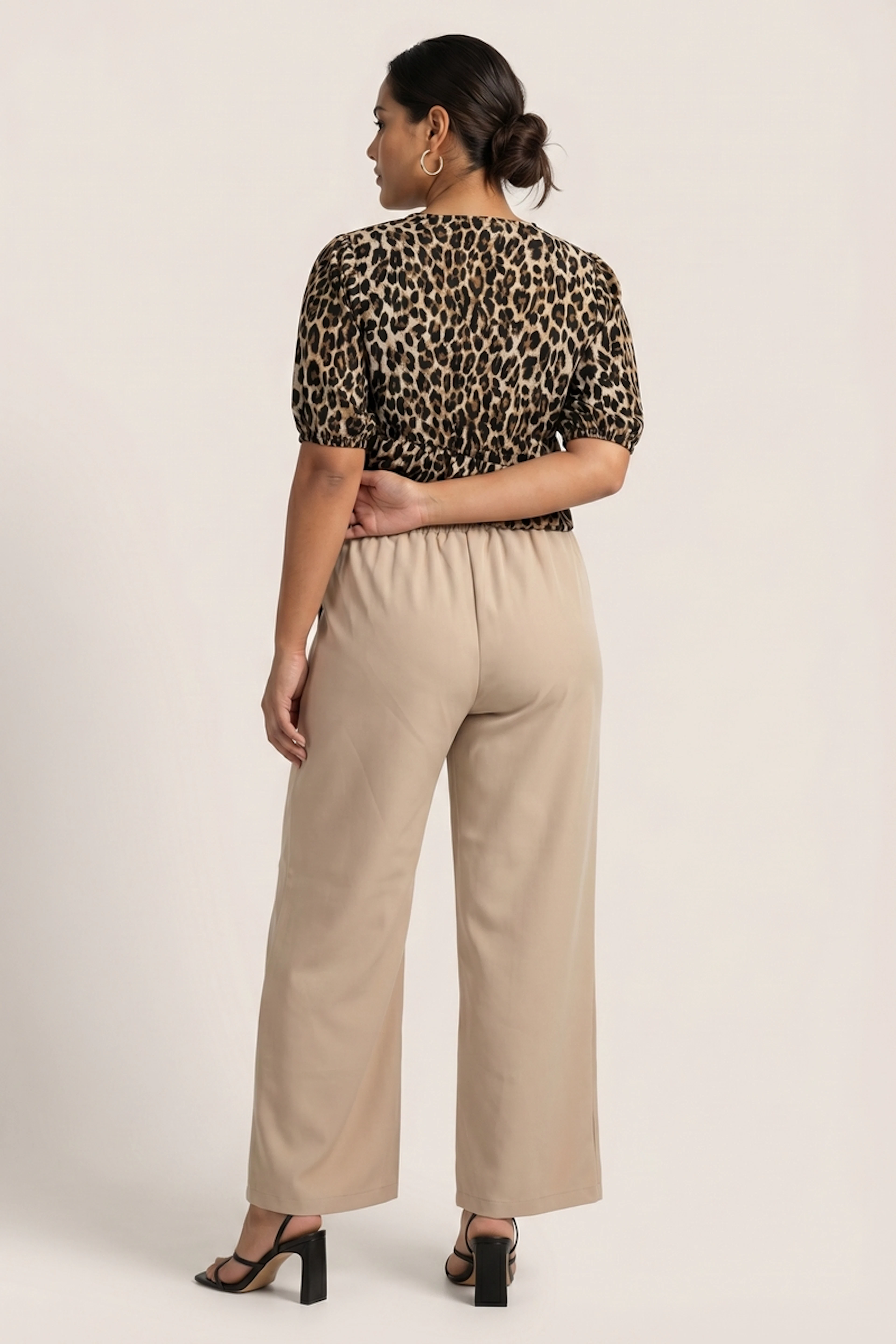 Associe ce pantalon élégant avec un chemisier léger pour un look estival chic, parfait pour les journées ensoleillées. • Pantalon large en coton • Taille haute flatteuse • Boutons décoratifs sur le côté • Longueur chevilles • Teinte sable polyvalente