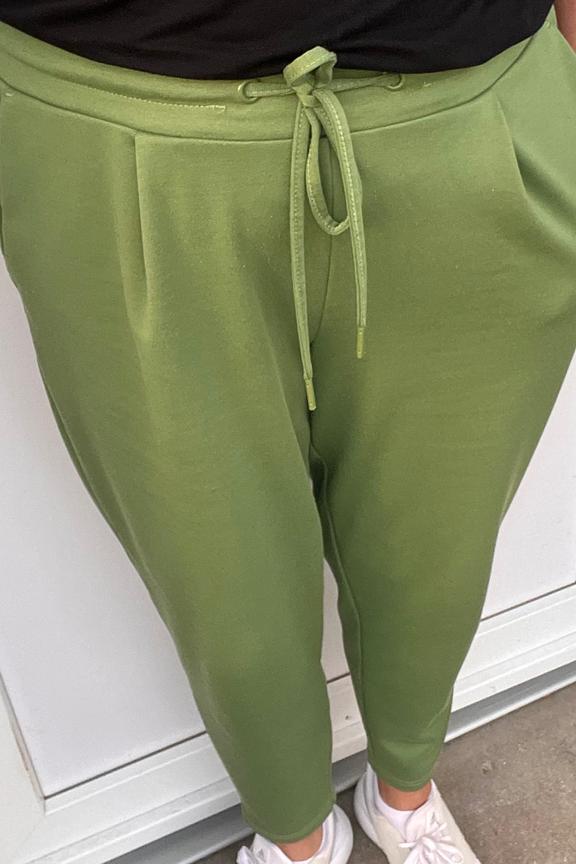 โข Pantalon vert pomme โข Jambes 3/4 โข Trendy โข Confortable โข Coupe skinny โข Taille รฉlastique avec cordon pour un maintien parfait โข Jeu de plis imitation pantalon ร pinces