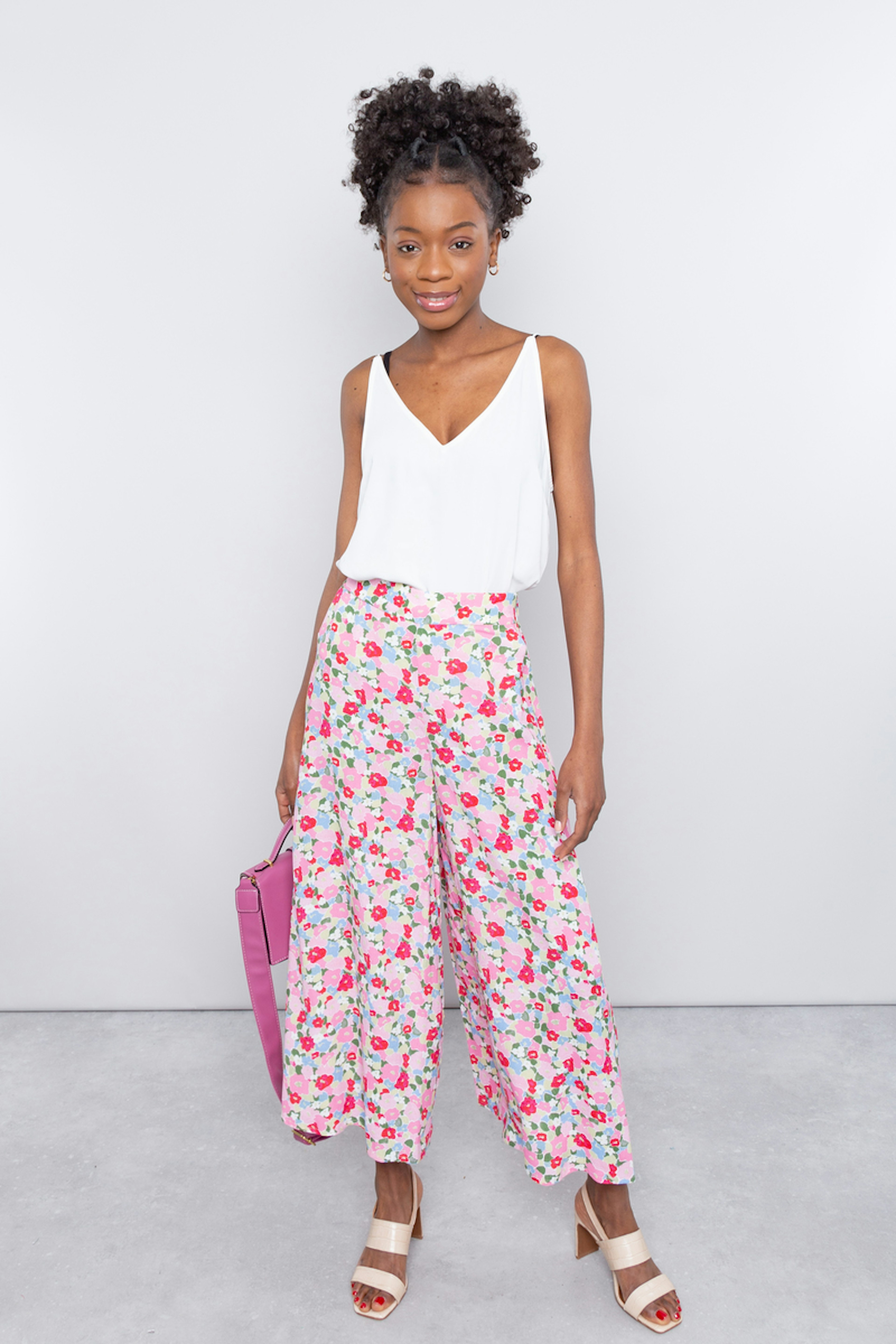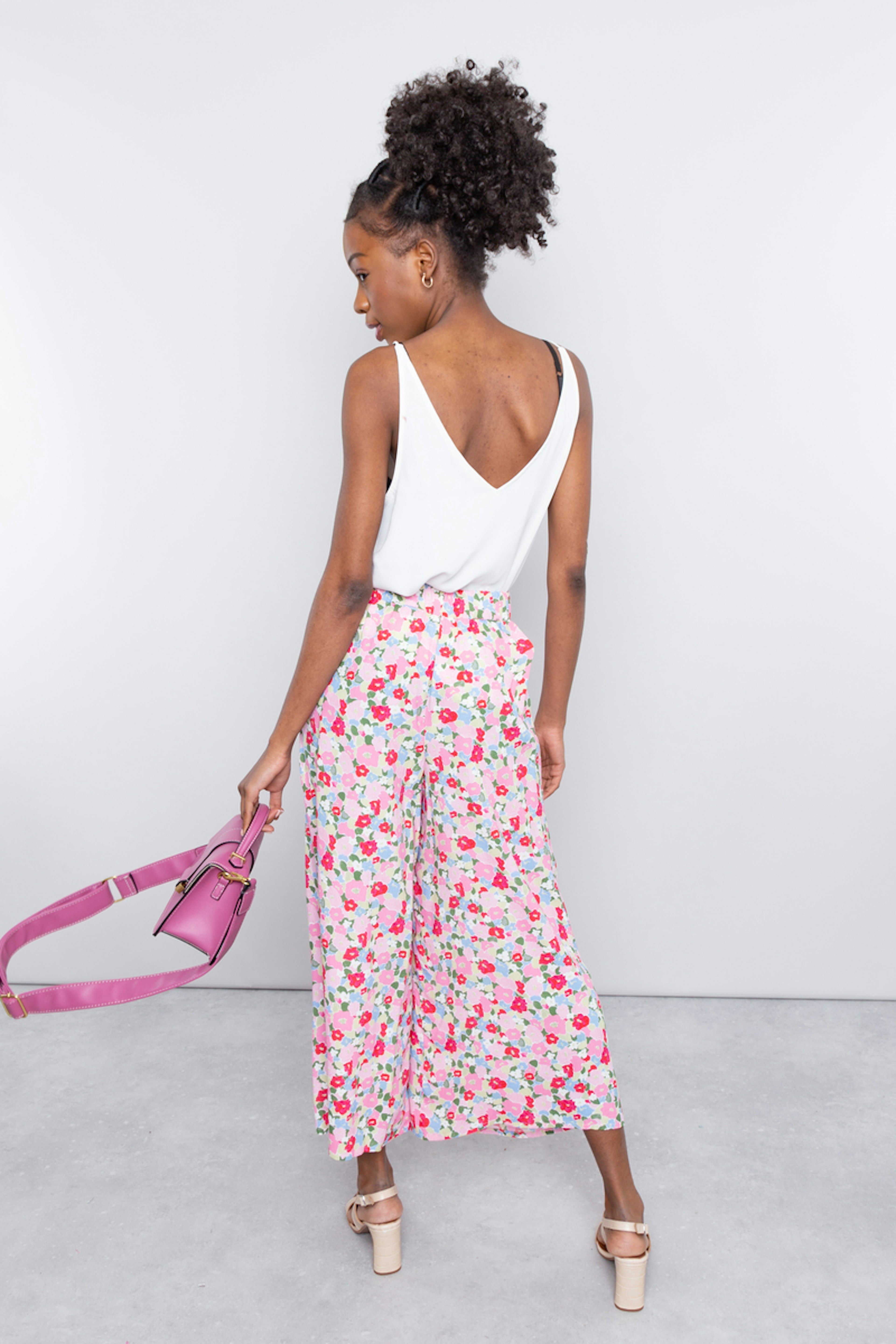 โข Pantalon fluide imprimรฉ โข Imprimรฉ fleuri rose โข Jambe รฉvasรฉe โข A porter avec un top tout l'รฉtรฉ