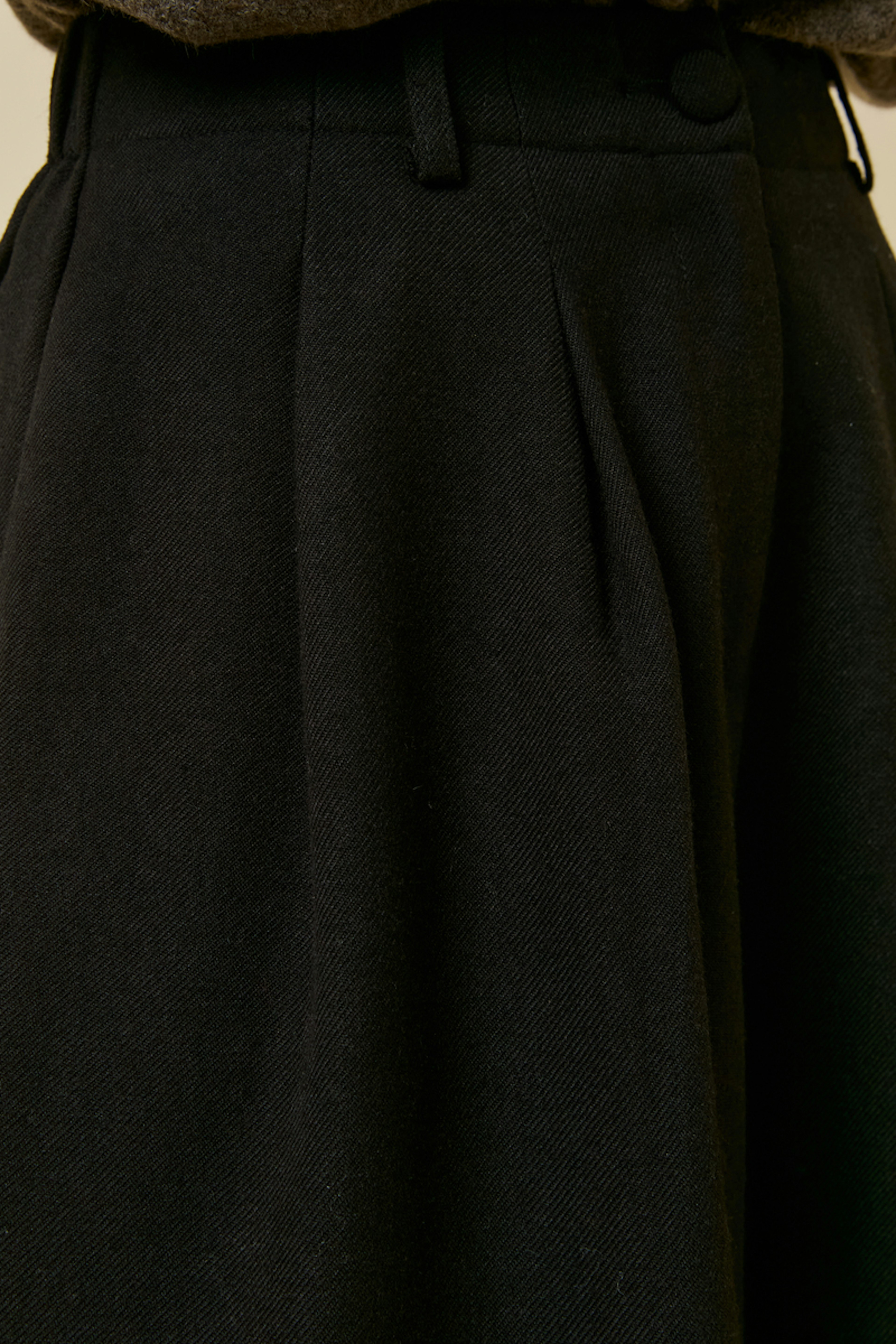 Associez ce pantalon ample avec un pull doux et des bottines en cuir pour une allure élégante et confortable cet hiver. • Pantalon ample • Taille haute plissée • Longueur cheville • Matière mélangée • Couleur noire