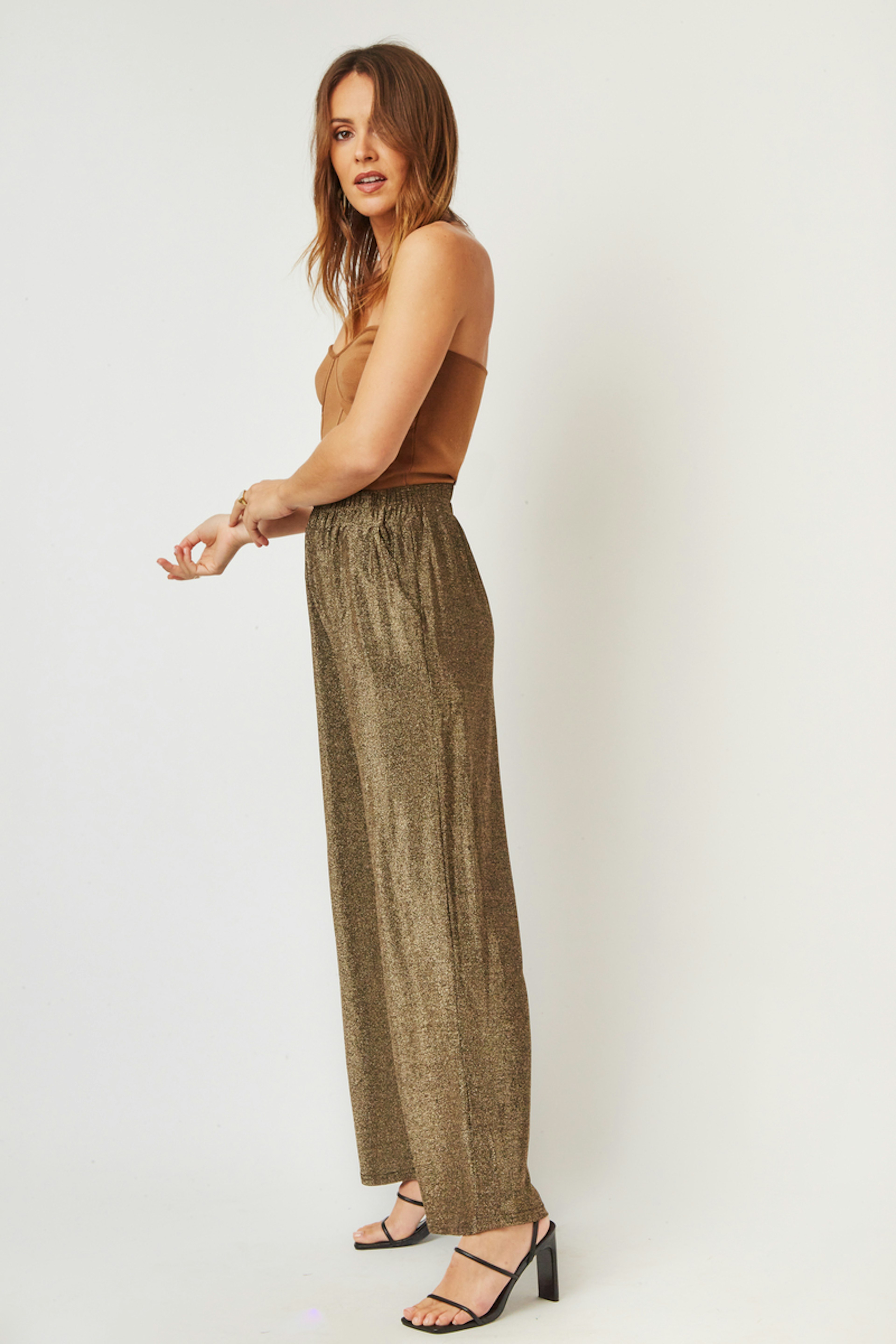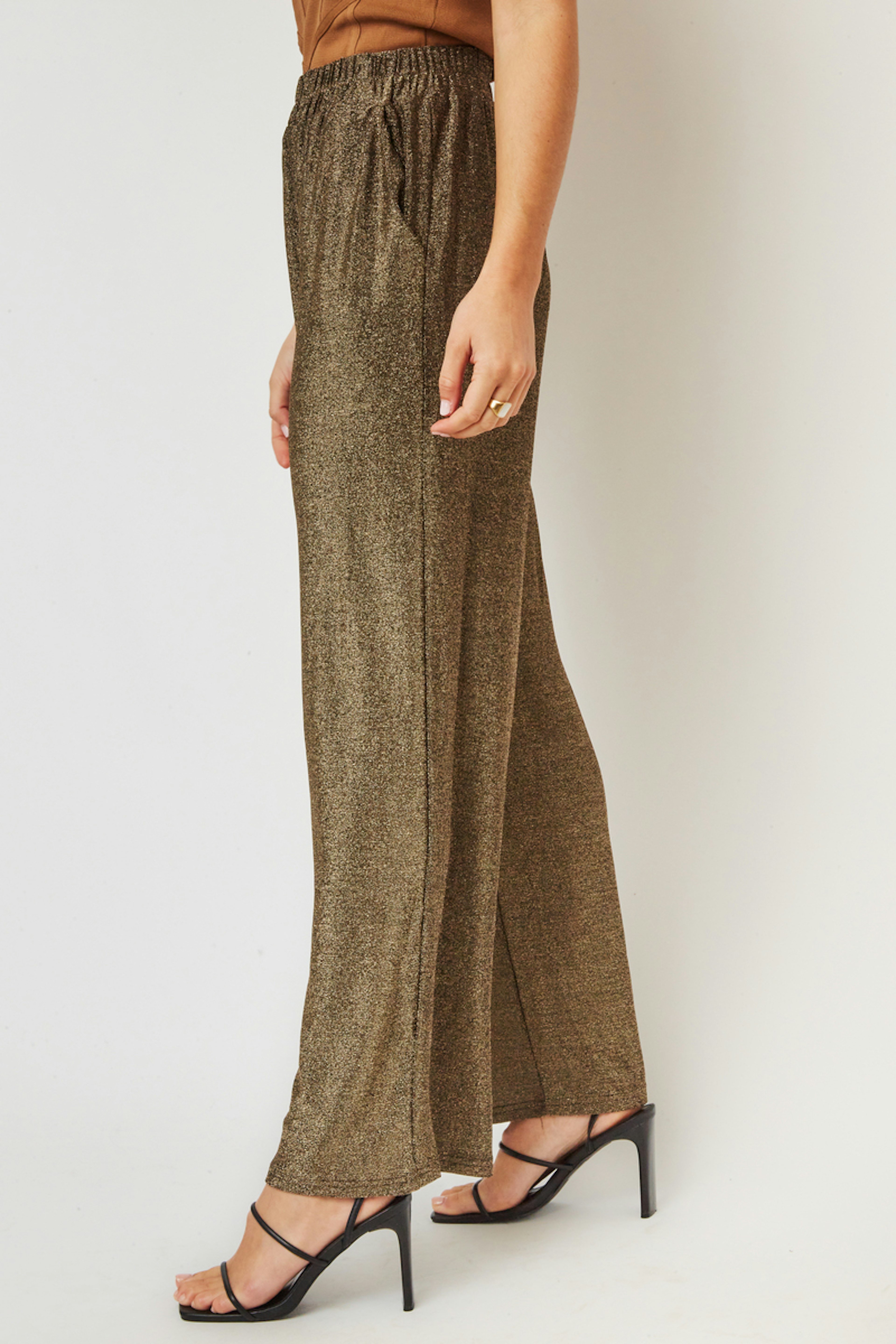 โ€ข Pantalon large dans une brillante qualitรฉ lamรฉe โ€ข Plis et poches italienne sur le devant โ€ข Pleine longueur โ€ข Coupe dรฉcontractรฉ