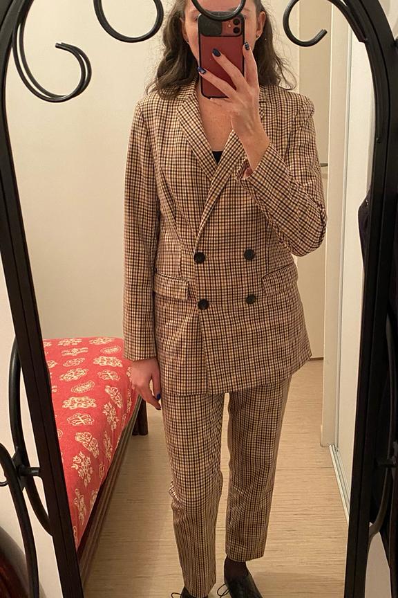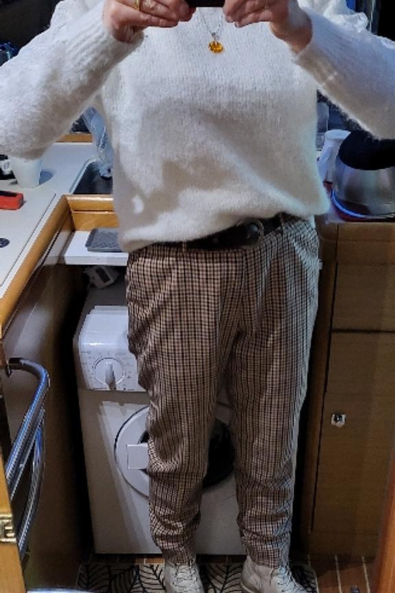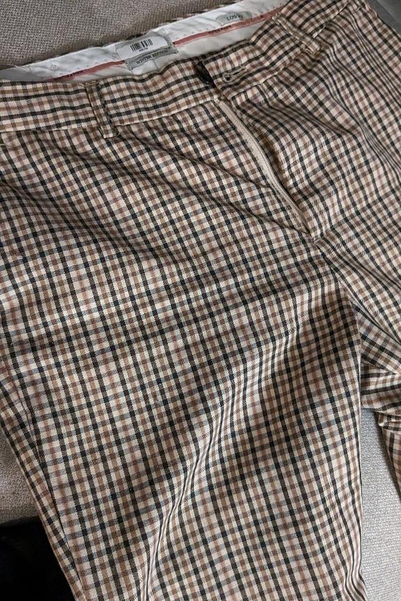 โข Pantalon ร pinces ร carreaux marron โข Prince de Galles โข Taille normale โข Bouton et zip โข Passants pour la ceinture