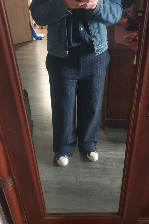 โข Pantalon รฉvasรฉ en coton marine ร carreaux verts โข Taille haute โข Braguette zippรฉe โข Longueur 7/8รจme โข Conรงu en coton bio qui utilise 70% moins d'eau qu'un coton conventionnel