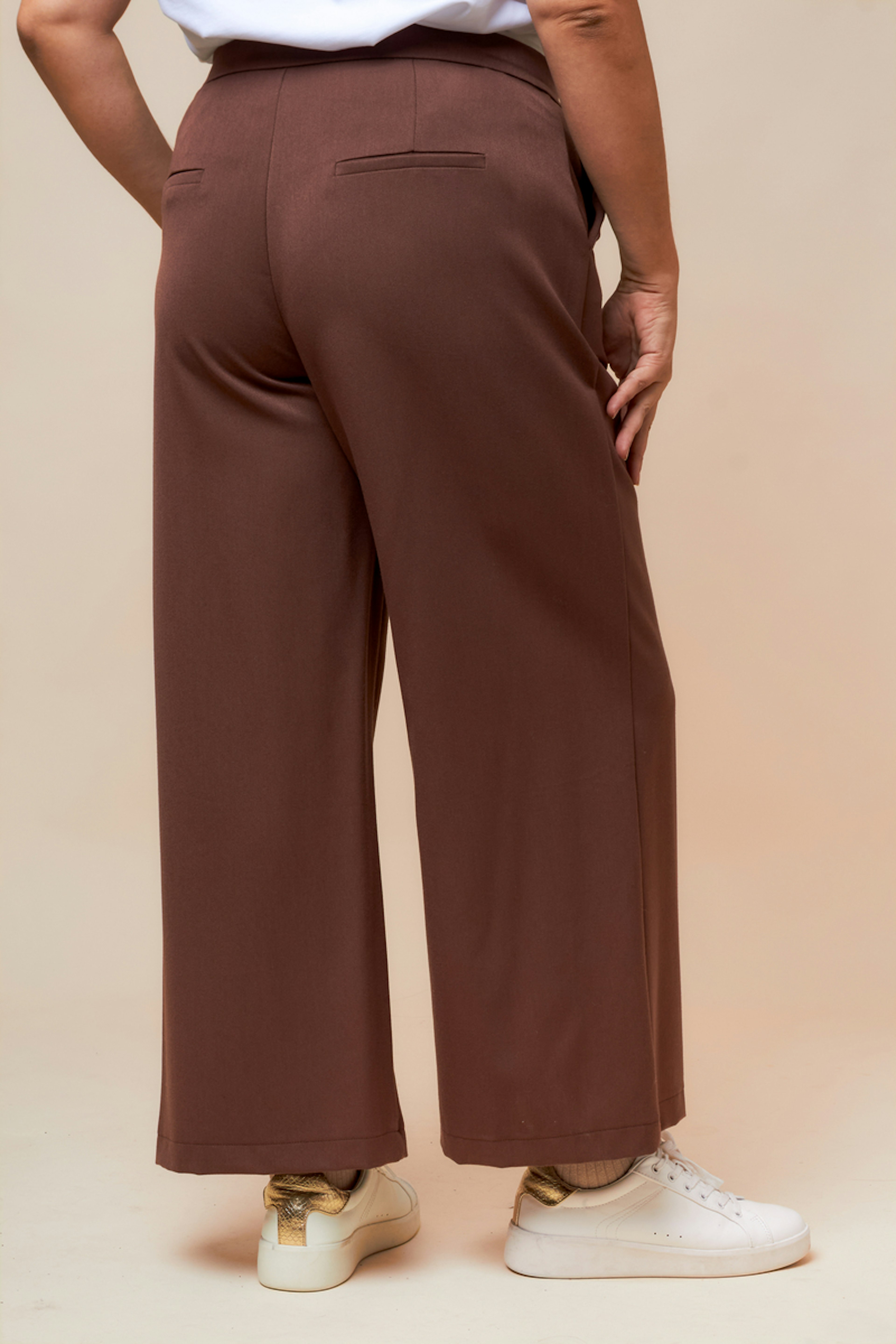 Pour un look décontracté-chic, associez ce pantalon avec une chemise en jean et des baskets blanches. Parfait en toute saison. • Pantalon large • Coupe fluide • Taille élastique avec cordon • Poches latérales pratiques • Teinte marron élégante