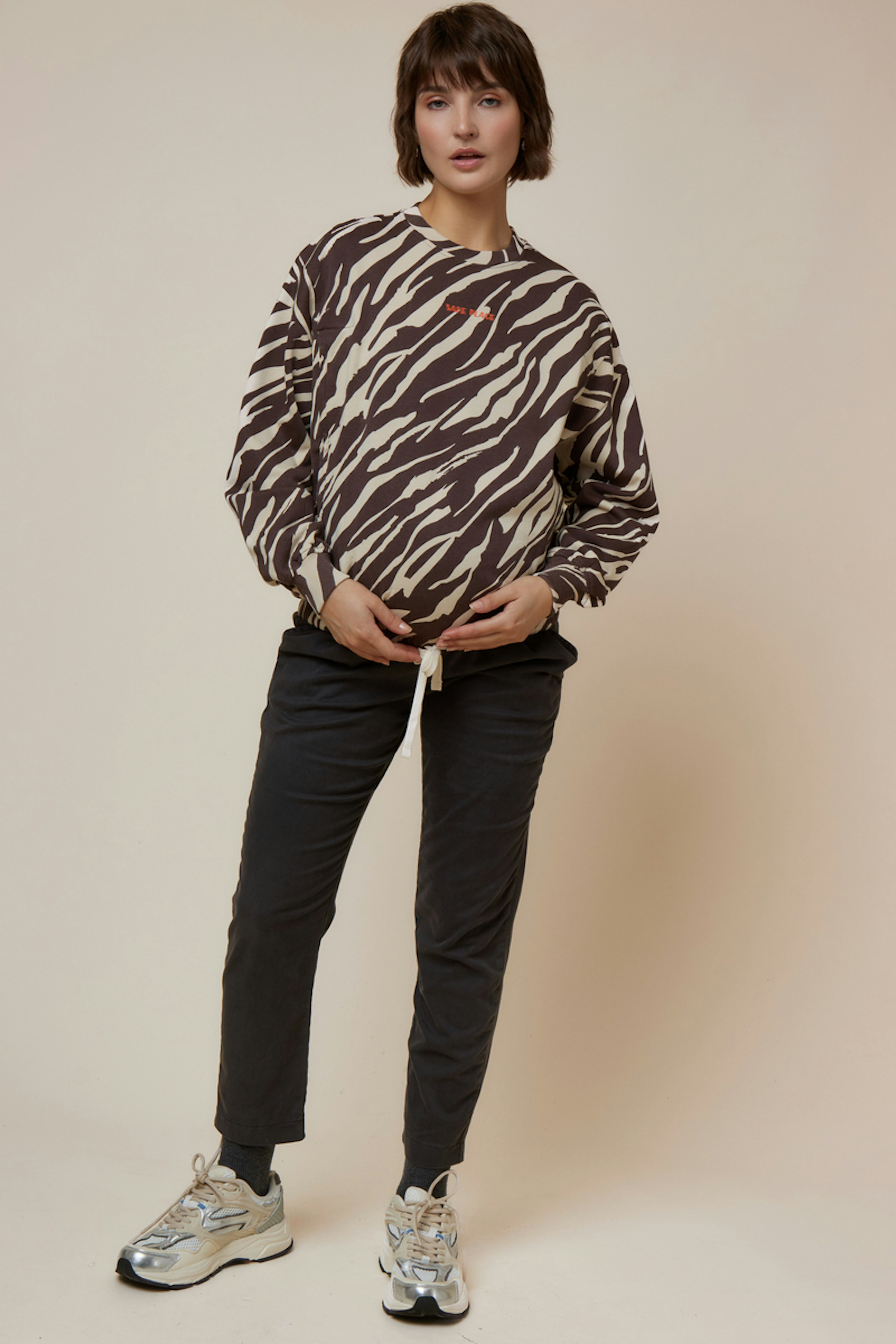 Ce joli pantalon de maternité s'accorde parfaitement avec un blouson léger et des baskets pour un look casual-chic, idéal pour les premières journées fraîches de la saison. • Pantalon en coton • Coupe carrot • Bandeau en maille jersey à la taille • Jambe large, resserrée aux mollets • Poches en biais sur le côté