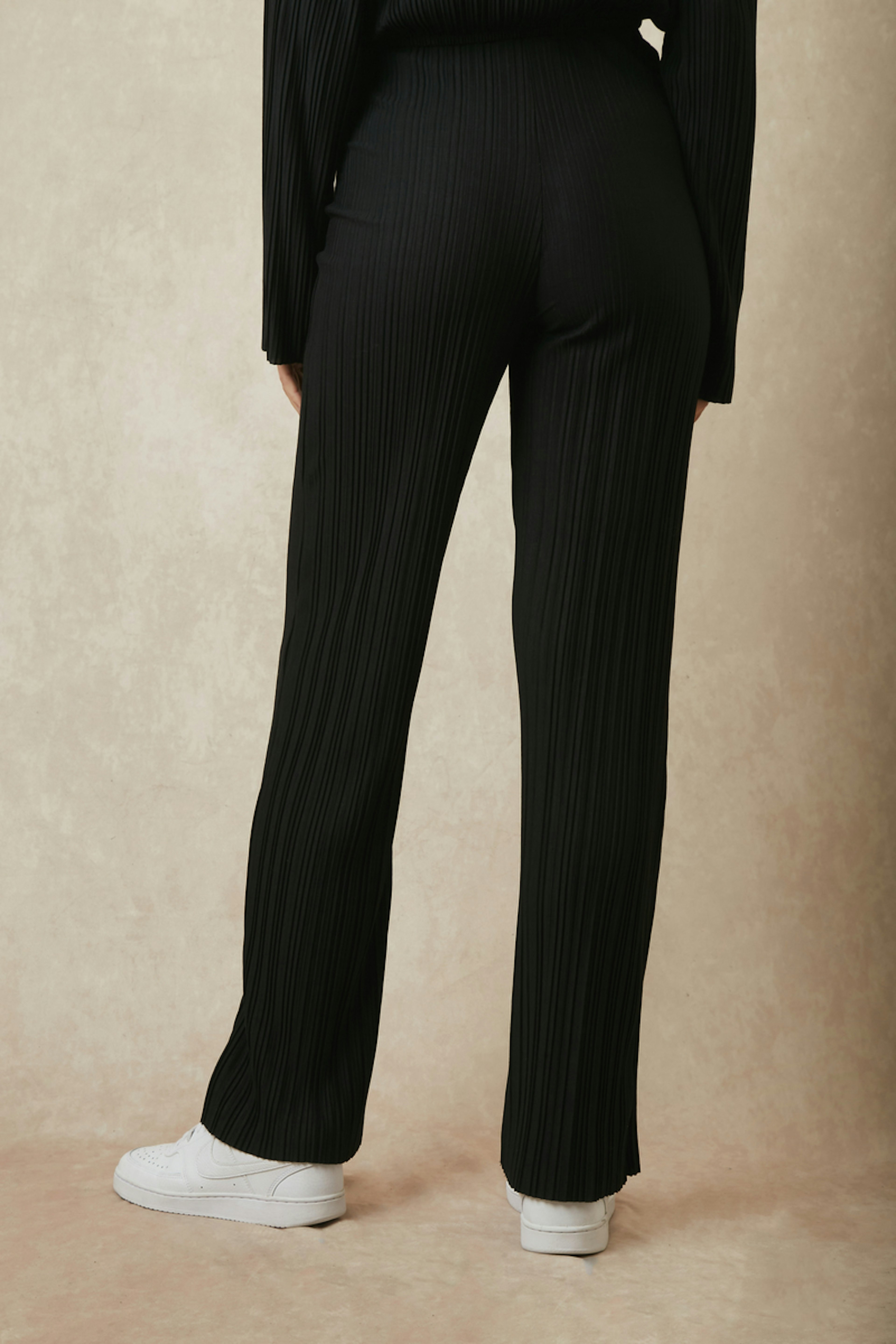 Associez ce pantalon noir plissé avec un top ajusté et des bottines pour un look chic et sophistiqué. Parfait en toute saison. • Pantalon plissé confortable • Coupe large • Taille haute elastiquée • Matière fluide