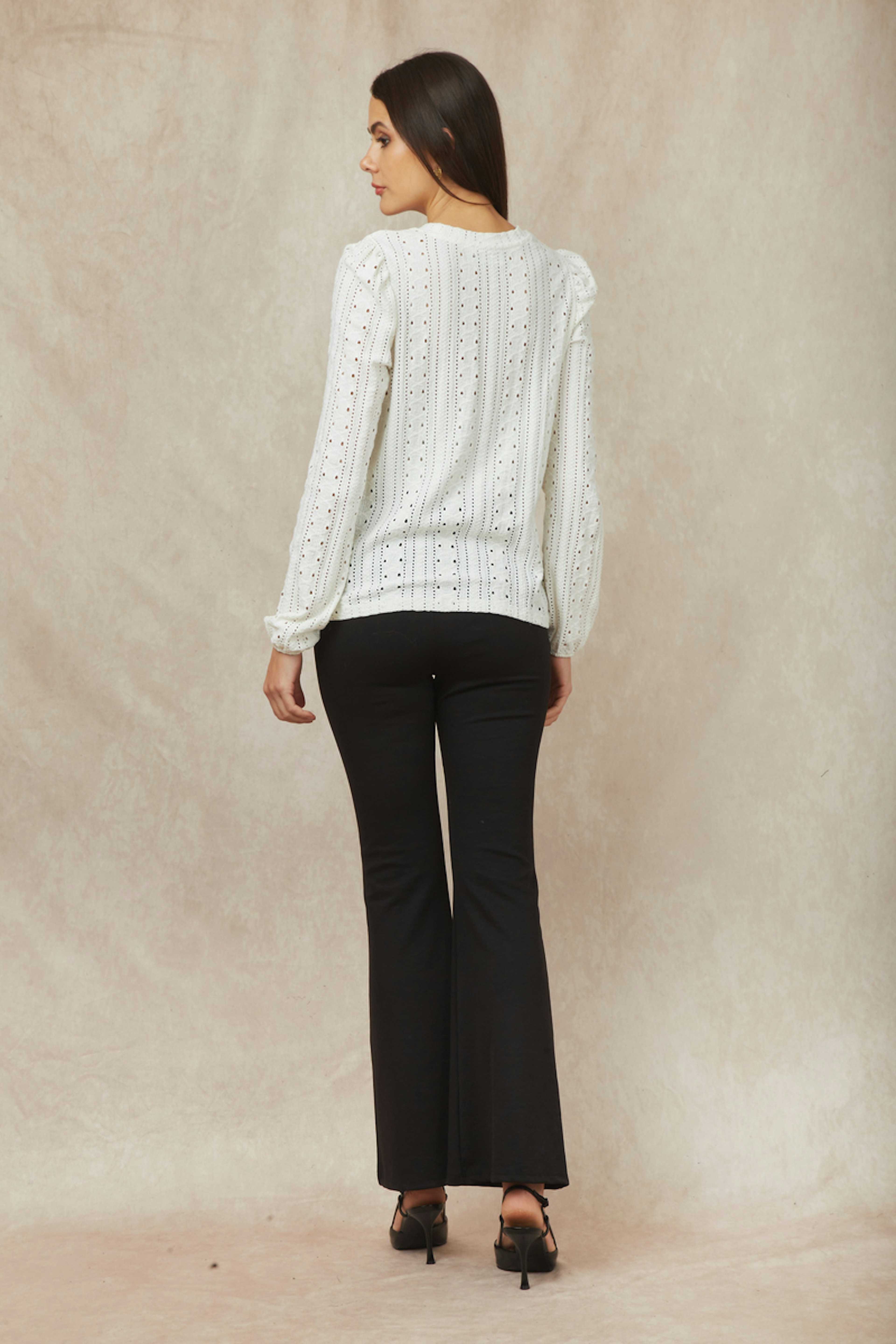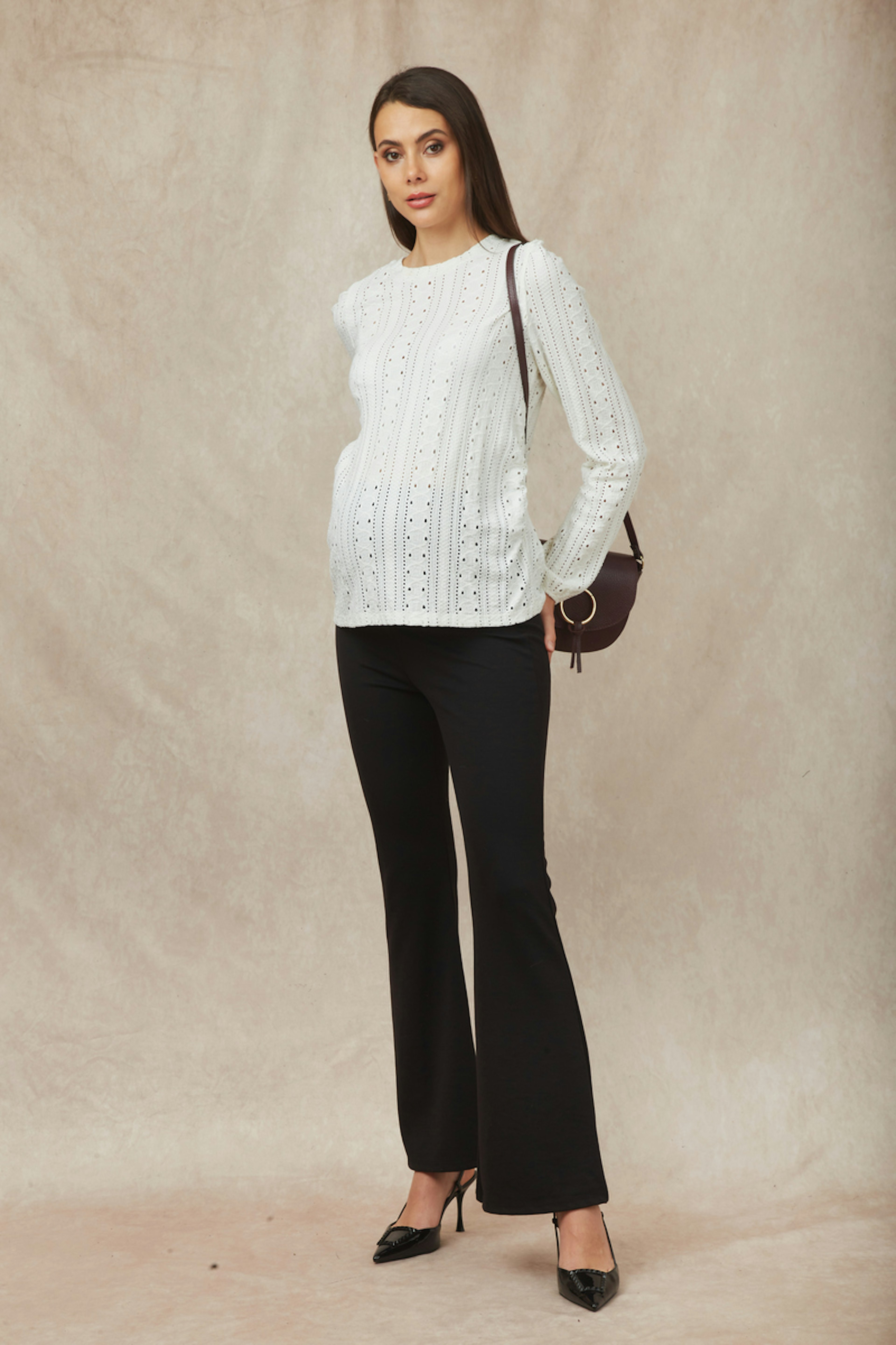 Associez ce pantalon noir avec un top coloré et des escarpins pour un look chic, idéal pour toutes les saisons. • Pantalon coupe évasée • Taille haute • Tissu extensible