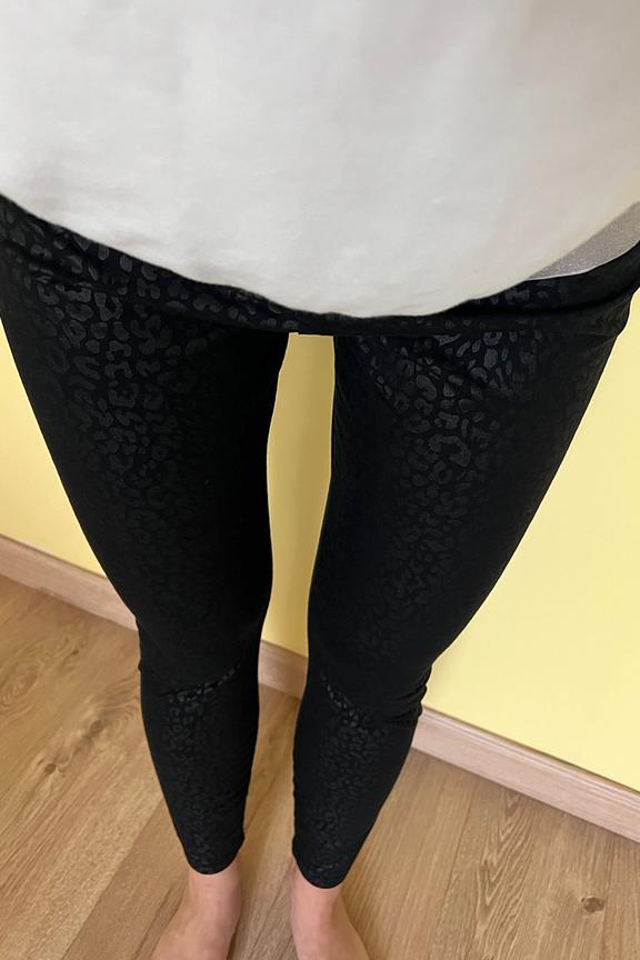 Associez ce pantalon ร un pull douillet et des bottines pour un look hivernal chic et confortable. โข Pantalon legging en coton โข Coupe ajustรฉe โข Ceinture รฉlastiquรฉe โข Longueur cheville โข Motif lรฉopard ton sur ton