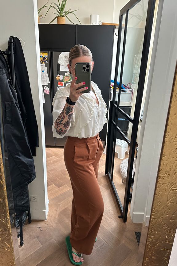 โ€œEnsemble au top ! Le pantalon est long mais parfait avec des talons ou baskets compensรฉes.โ€