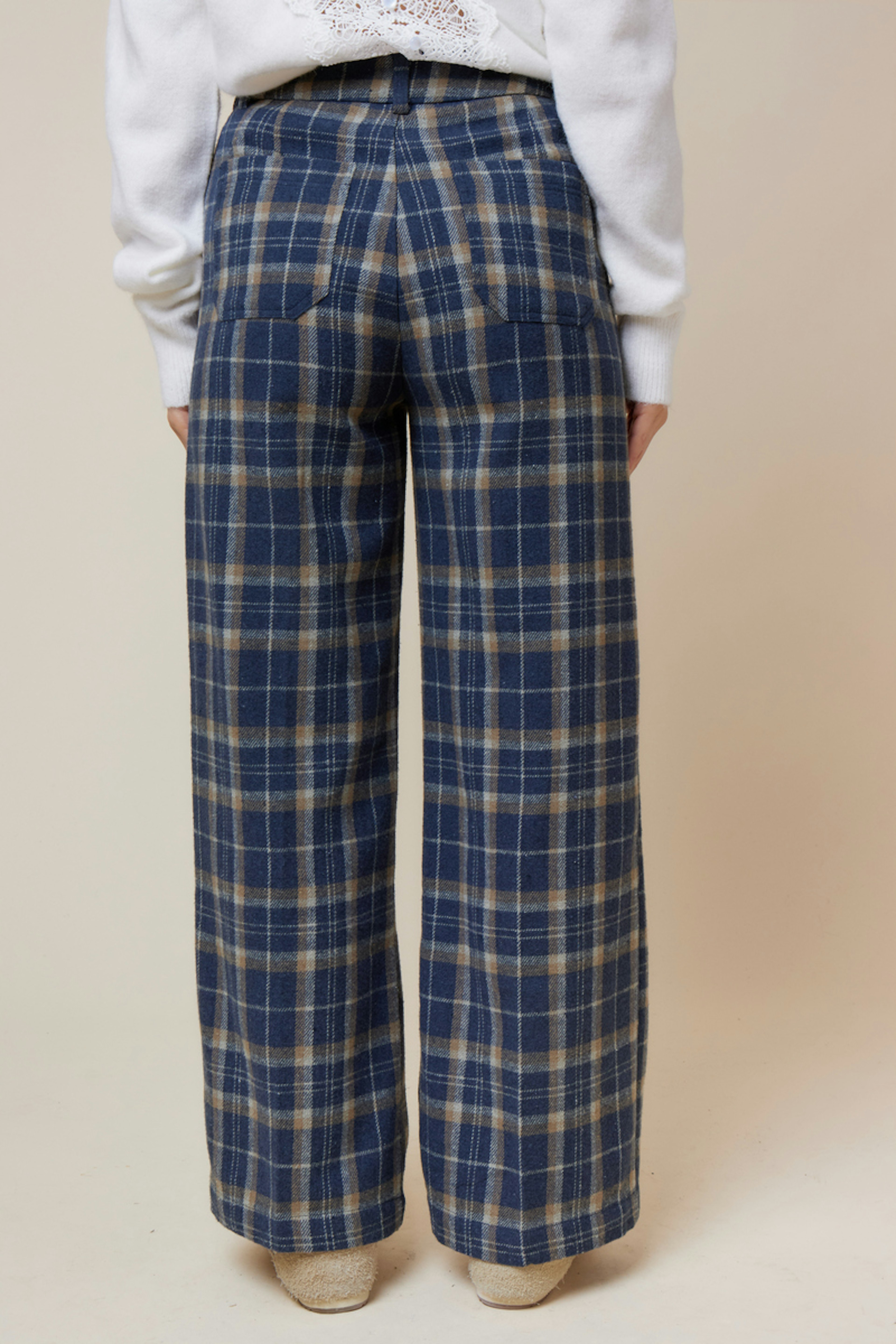 Optez pour un look chic et décontracté en associant ce pantalon à un pull oversized et des bottines en cuir pour un style hivernal parfait. • Pantalon imprimé à carreaux • Coupe large et fluide • Taille haute flatteuse • Longueur jusqu'au sol • Tissu doux et confortable